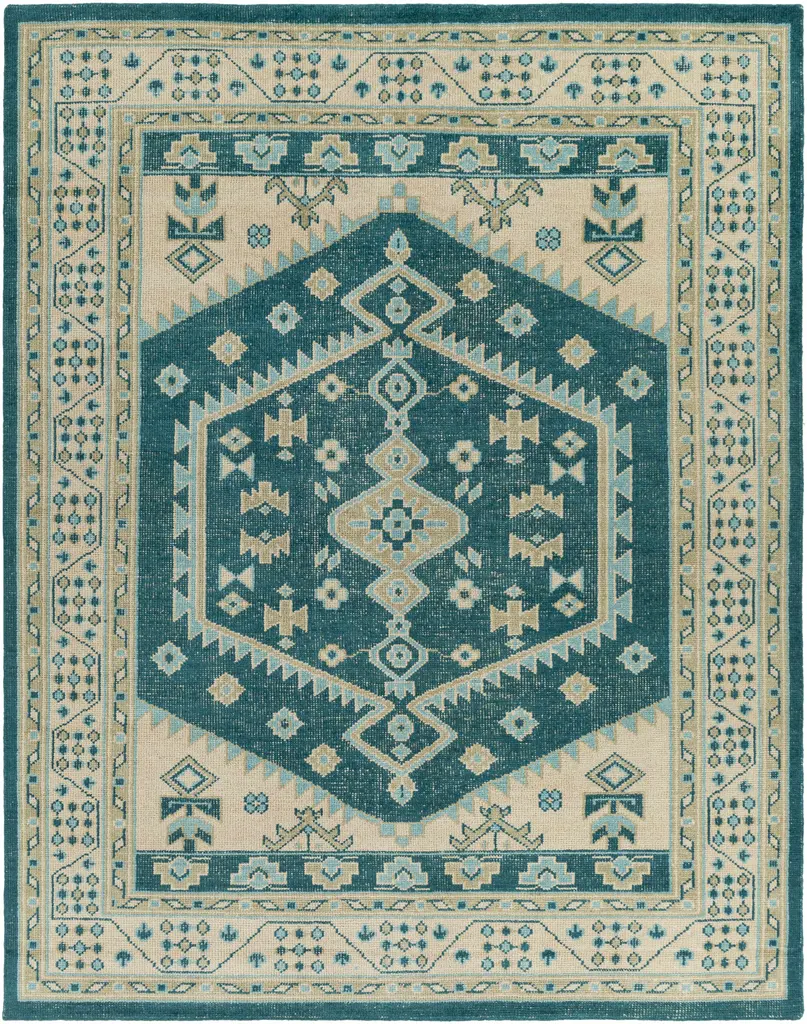 Collection: Stepps Colors: Beige, Sage, Aqua, Teal Construction: Hand Knotted Material: 100% Wool Pile: Low Pile Pile Height: 0.17" Styles: Traditional Made In: India Thickness: 0.45" Price Range: $$$$$ (Affordable)
