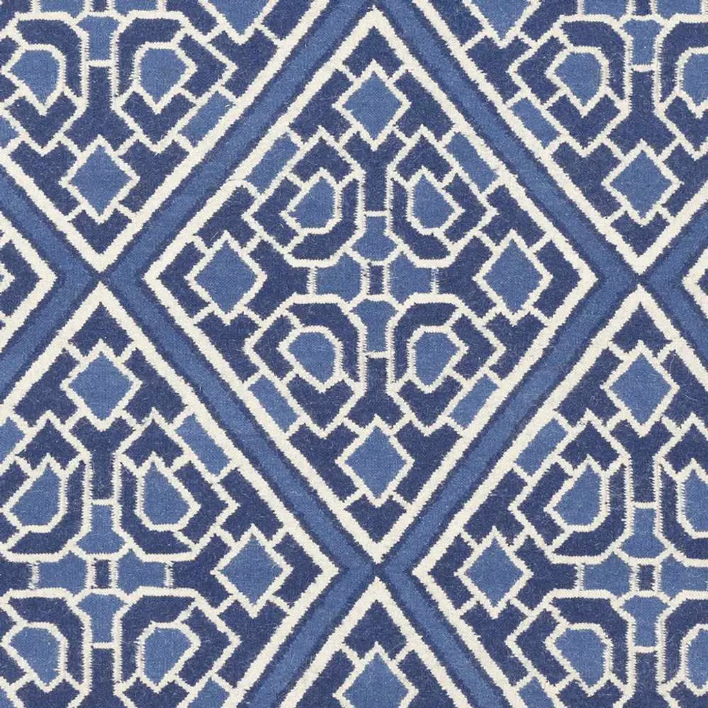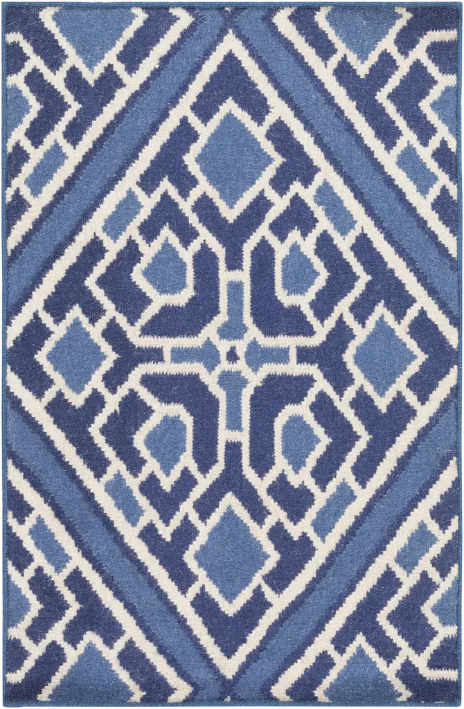 Collection: Steprock Colors: Navy, Peach Construction: Hand Woven Material: Face: 100% Wool Pile: No Pile Styles: Bohemian/Global Made In: India Thickness: 0.16" Price Range: $$$$$ (Affordable)