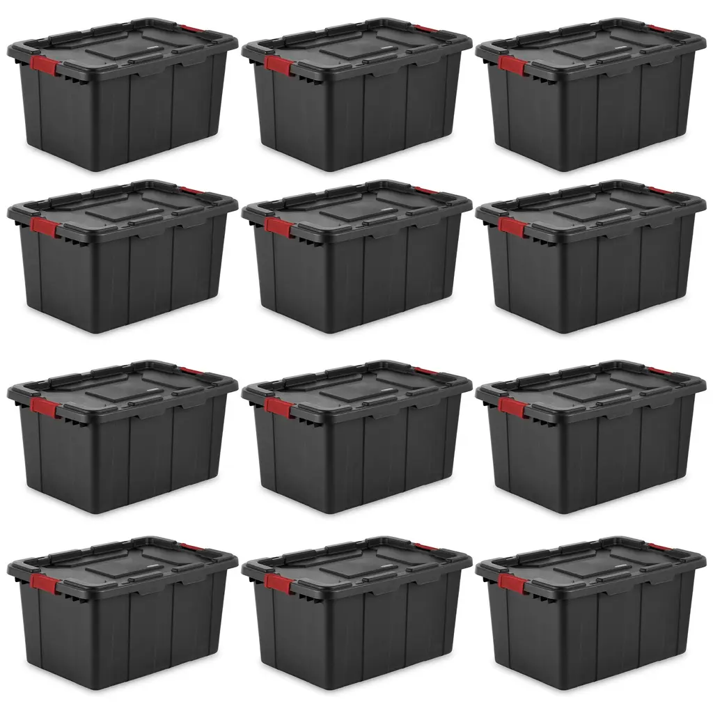 Sterilite 15 Gallon Durable Rugged Industrial Tote With Red Latches, 12 Pack - Black