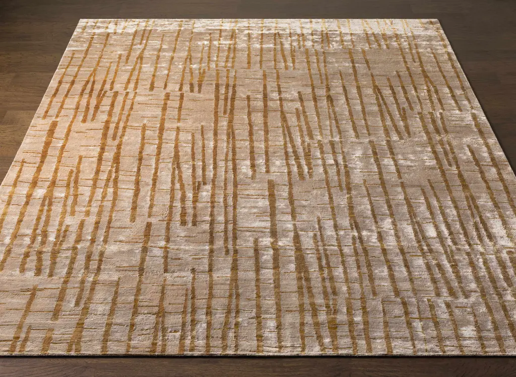 Collection: Stetson Colors: Camel, Dark Red Construction: Hand Knotted Material: 70% NZ Wool,30% Viscose Pile: Medium Pile Pile Height: 0.31" Styles: Contemporary Made In: India Thickness: 0.39" Price Range: $$$$$ (Premium)