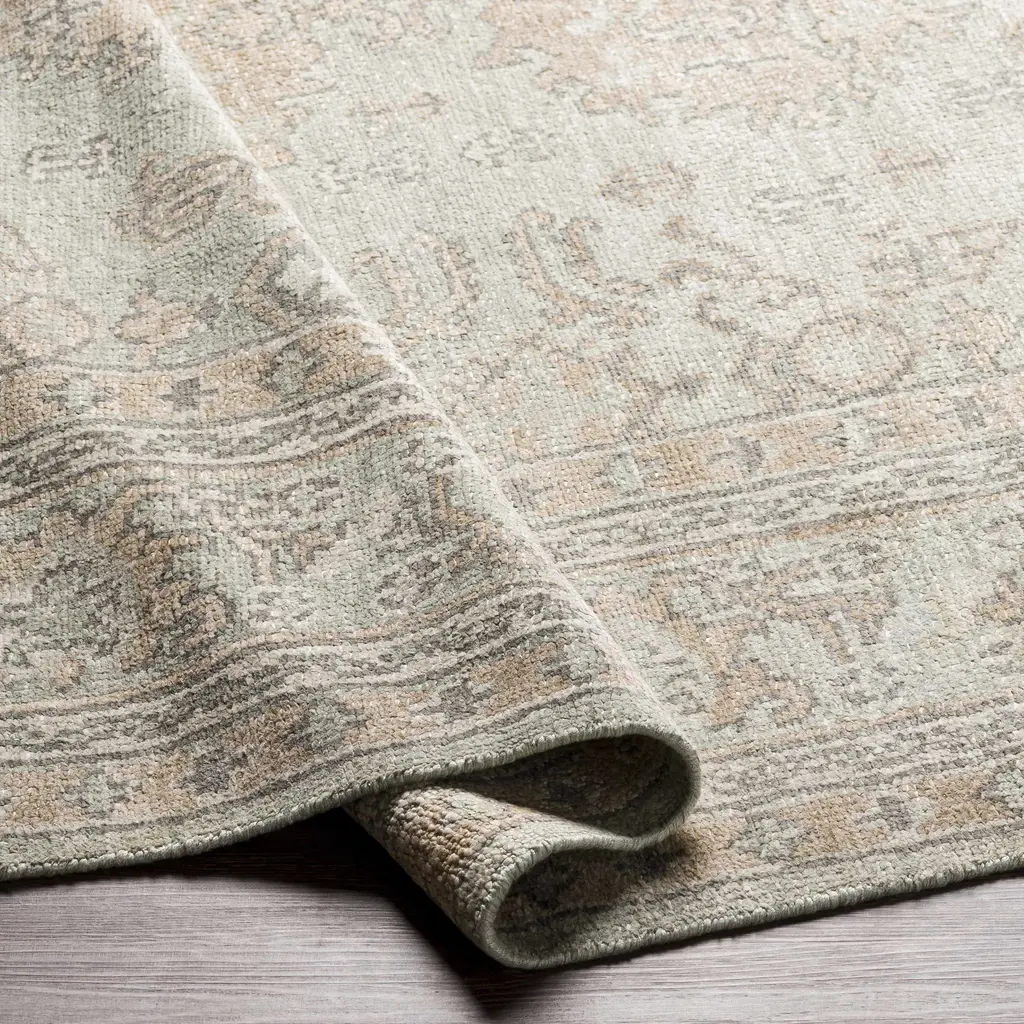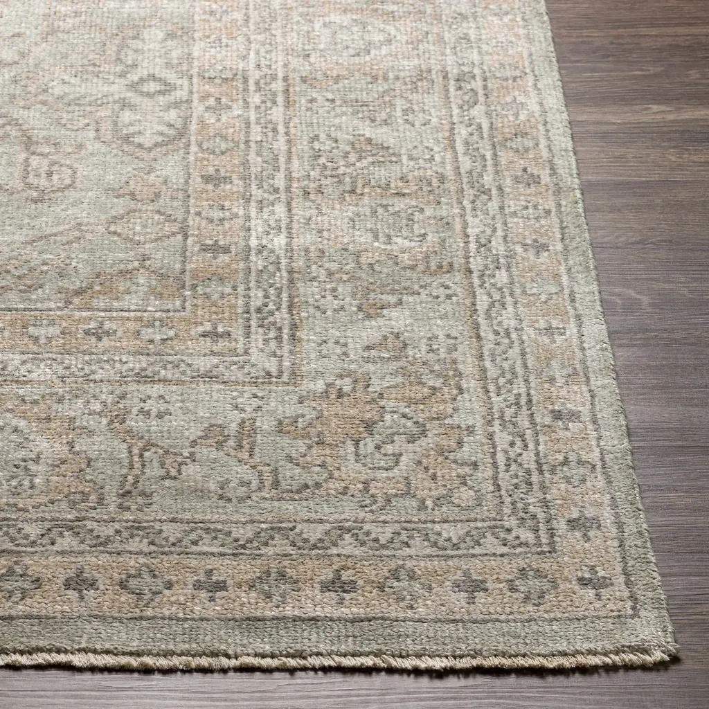 Collection: Stock Colors: Charcoal, Taupe, Medium Gray, Beige Construction: Hand Knotted Material: 100% Viscose Pile: Low Pile Pile Height: 0.15" Styles: Traditional Made In: India Thickness: 0.15" Fringe Length: 0.5" Price Range: $$$$$ (Premium)