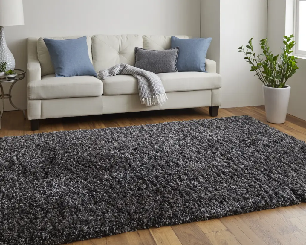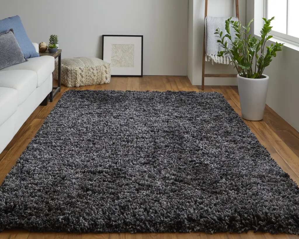 Collection: Stoneleigh Colors: Black, Gray Construction: Hand Tufted Material: Face: 100%Polyester / Warp: Cotton Pile: High Pile Pile Height: 2.75" Styles: Contemporary,Luxury & Glam,Casual Backing: Cotton Made In: India Thickness: 2.75" Price Range: $$$$$ (Affordable)
