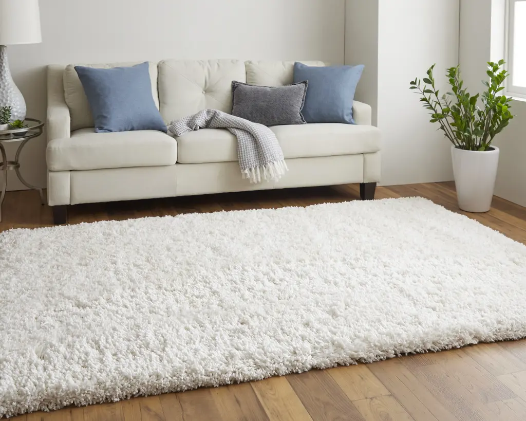 Collection: Stoneleigh Colors: Ivory, White Construction: Hand Tufted Material: Face: 100%Polyester / Warp: Cotton Pile: High Pile Pile Height: 2.75" Styles: Contemporary,Luxury & Glam,Casual Backing: Cotton Made In: India Thickness: 2.75" Price Range: $$$$$ (Affordable)
