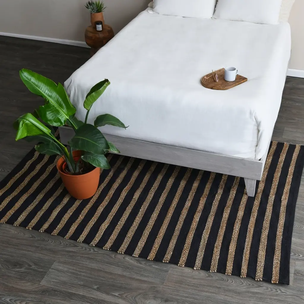 Add a dash of natural beauty to your home decor with this intricately woven jute and cotton rug; With versatile, contrasting hues and a sophisticated boho design, this rug will add comfort and texture to any living space