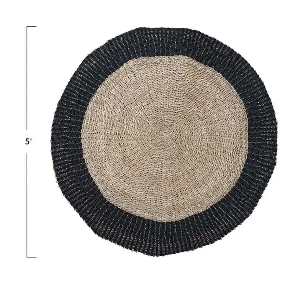 Storied Home Modern Boho Woven Seagrass Rug, Black And Natural