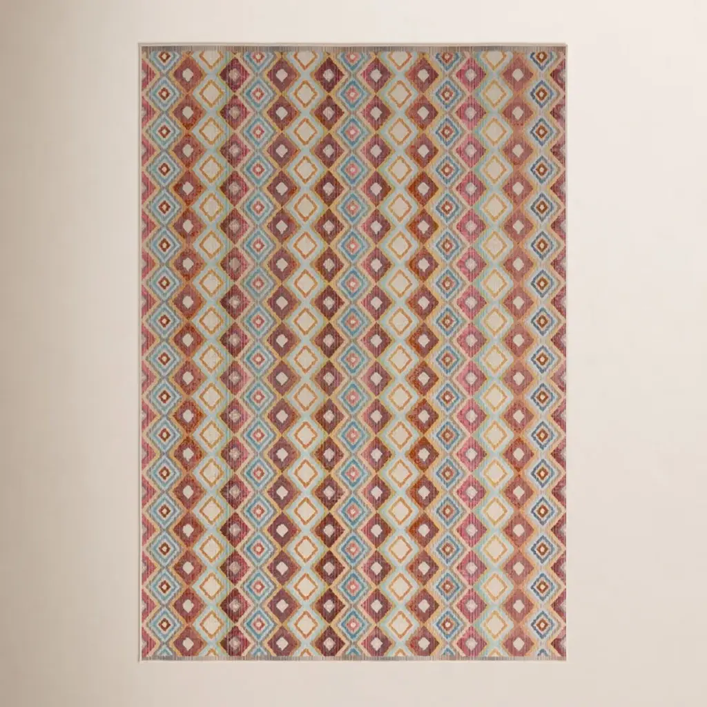 Multicolor woven cotton rug with diamond pattern; Spot clean only; Made from 100% cotton blend; Rug measures 84" L x 60" W x 2" H