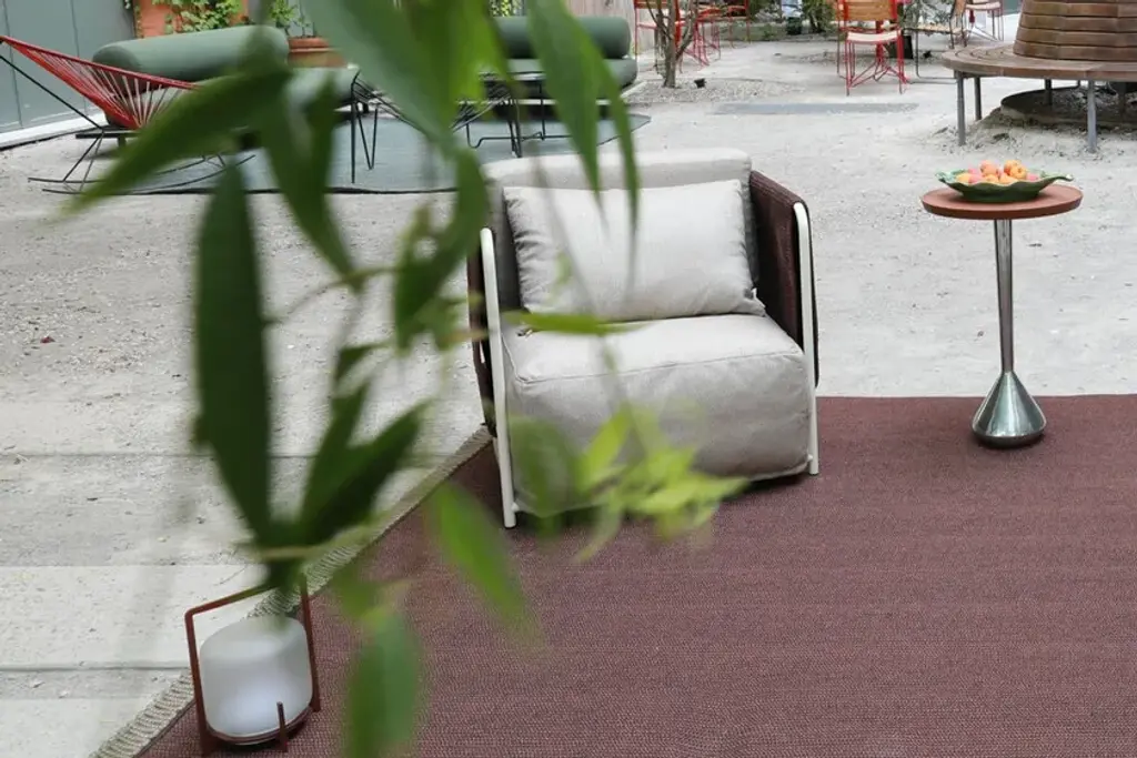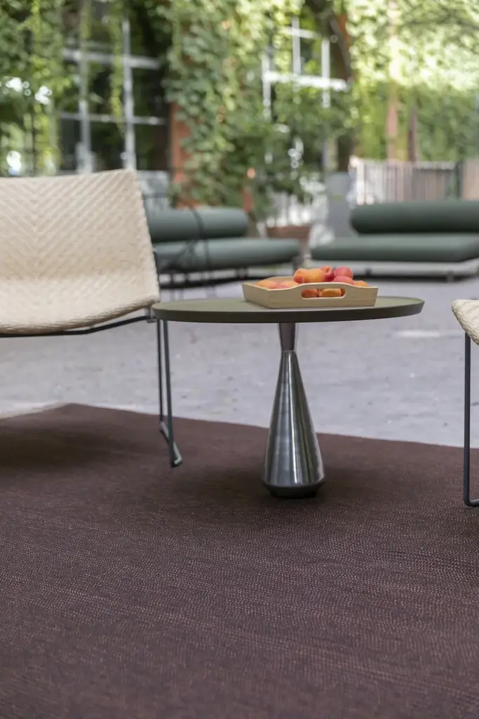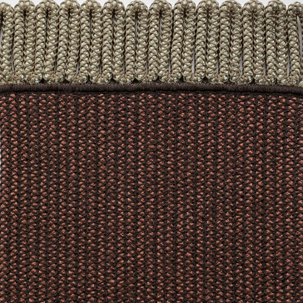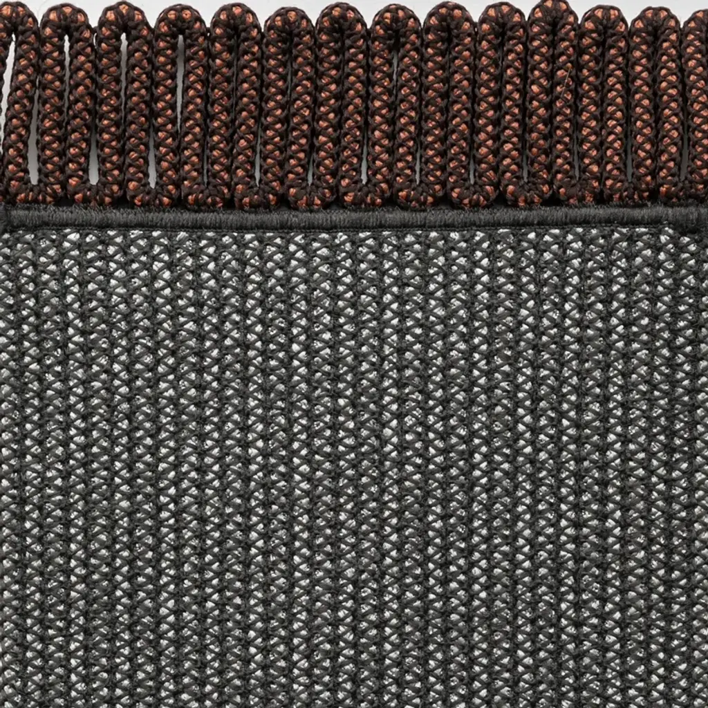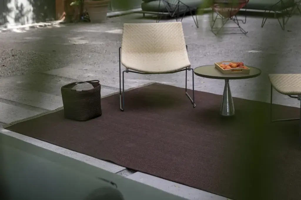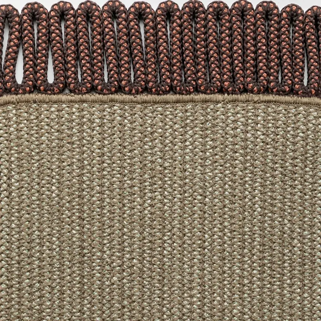 As for the baskets of the same collection, also the Strato rug was born from the development of a new bi-colour cord, exclusive for the mesh texture, that incorporates the layered effect typical of the baskets. In the rug, the border applied on the short sides is a graphic detail that simulates traditional fringes.Quality: Handsewn outdoor rug. Synthetic 'w-proof' yarn, UV and weather resistant.Thickness: 8 mm approx.Weight: 2,6 Kg/sqm approx.AVAILABLE COLOURS:STR 01 (light green - light brown | rust - dark brown) STR 02 (rust - dark brown | light green - light brown) STR 03 (silver - grey | rust - dark brown) STR 04 (teal - silver | light green - light brown)The configuration (size + color) must be completed to obtain the final price of the product.‘Plein Sud’ is a line of carpets for the residential and the ‘Contract’ outdoor, combining comfort and elegance, design experience and excellent raw materials. It ‘a collection of innovative products for the outdoor environment designed with the same comforts of home interiors, for the pleasure of living in beautiful surroundings. Thanks to the finish of the mélange yarn, with elegant shades and edged in different colours, the collection Plein Sud becomes a quality complement both for outdoor and indoor spaces. The carpets are made on hand looms with a synthetic fiber. The particular process that combines the plots of the frame to the manual applications, gives these products the thickness, the quality and the elegance of indoor carpets. The yarn is perfectly suitable for outdoor environments thanks to its durability and its resistance to atmospheric agents. All the models of the collection ‘Plein Sud’ have a high UV stability, are water repellent and can be stain-proof and anti-mold treated. Carpets can also be custom made, after consultation with our technical department. Plein Sud is 100% ‘renewable design’