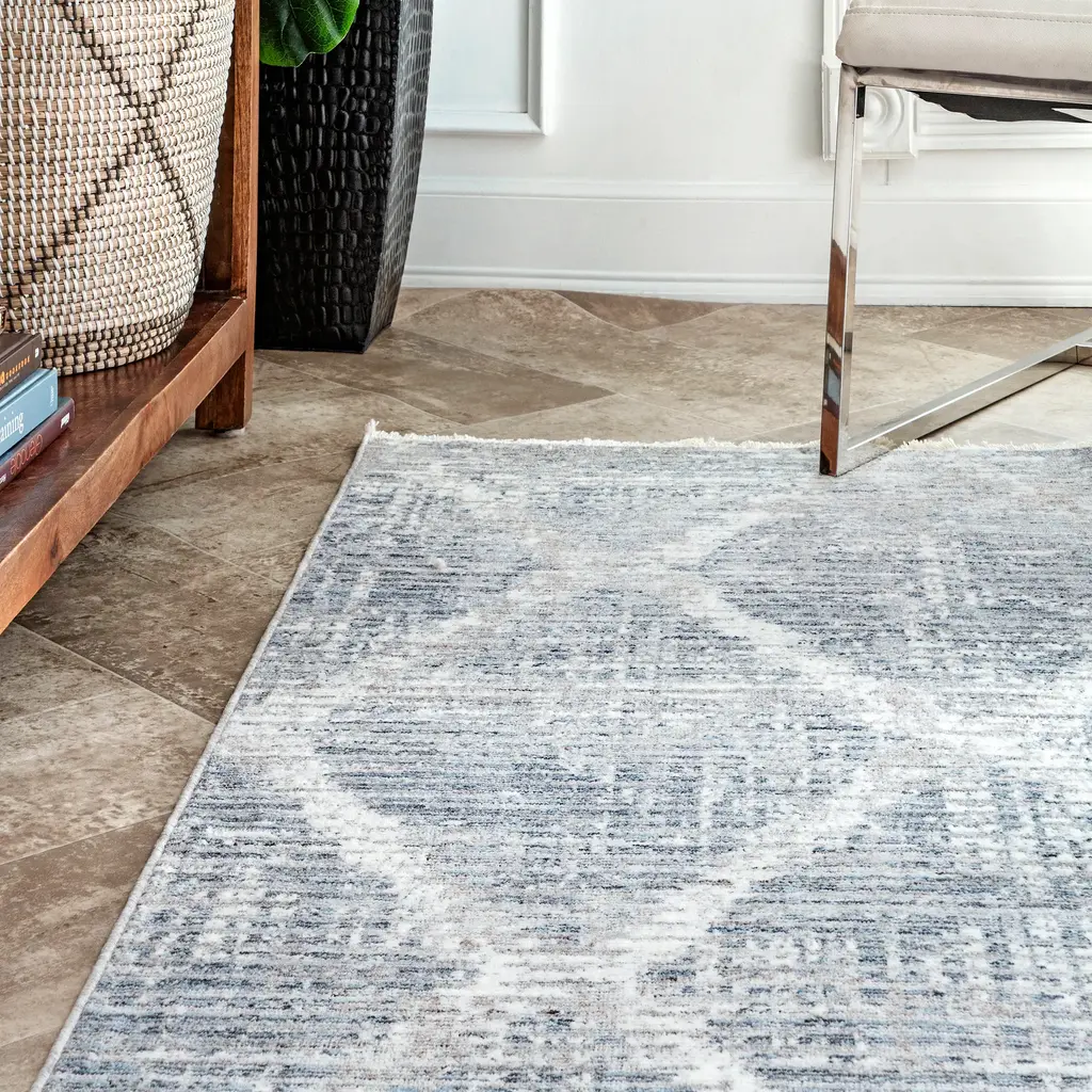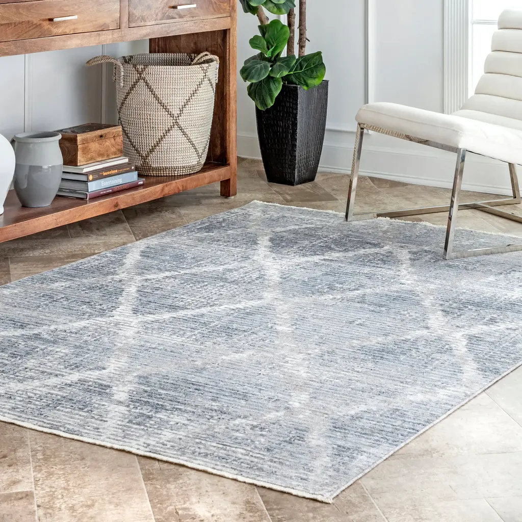 Streaked Trellis Fringe Rug | Silver - 5' 3" X 7' 7"