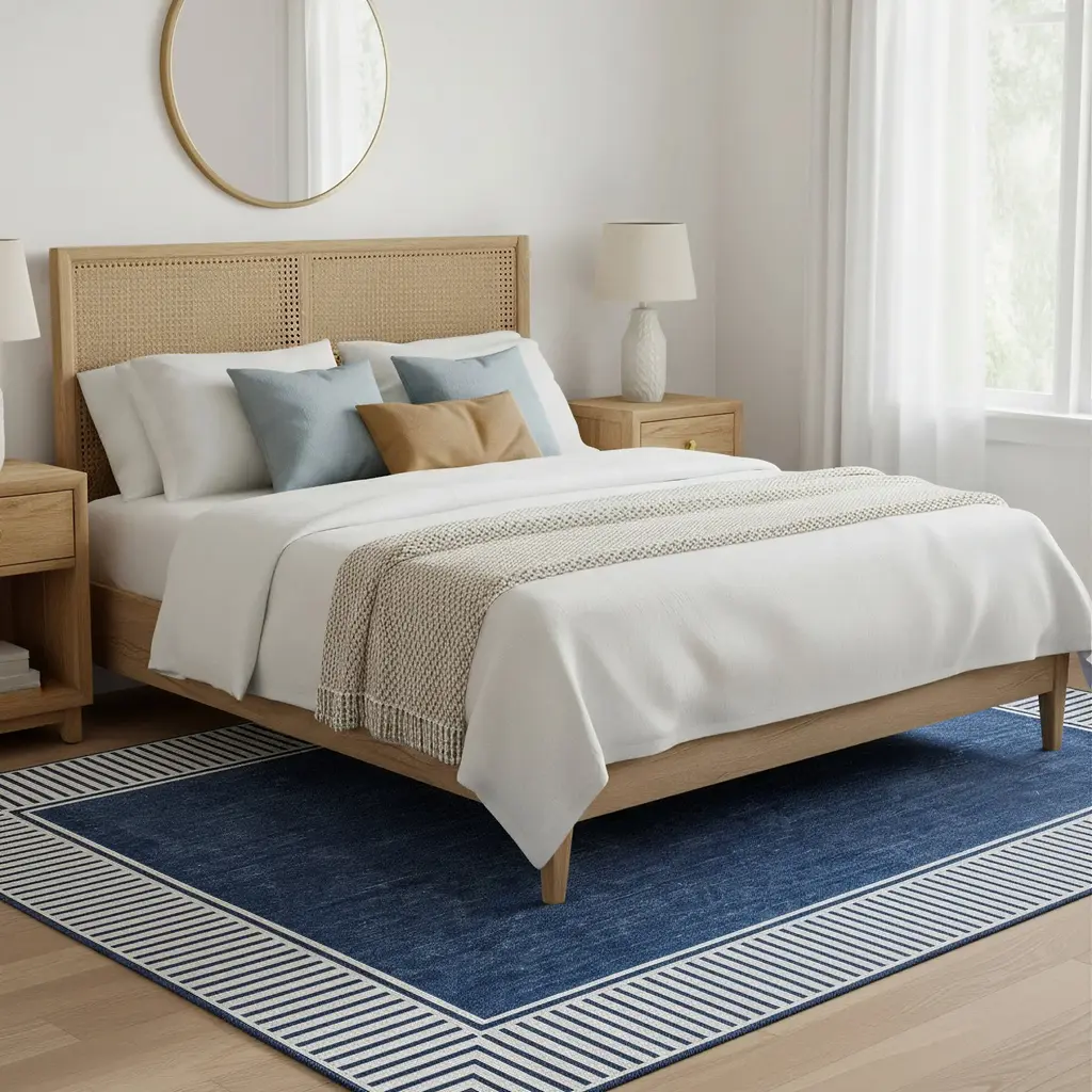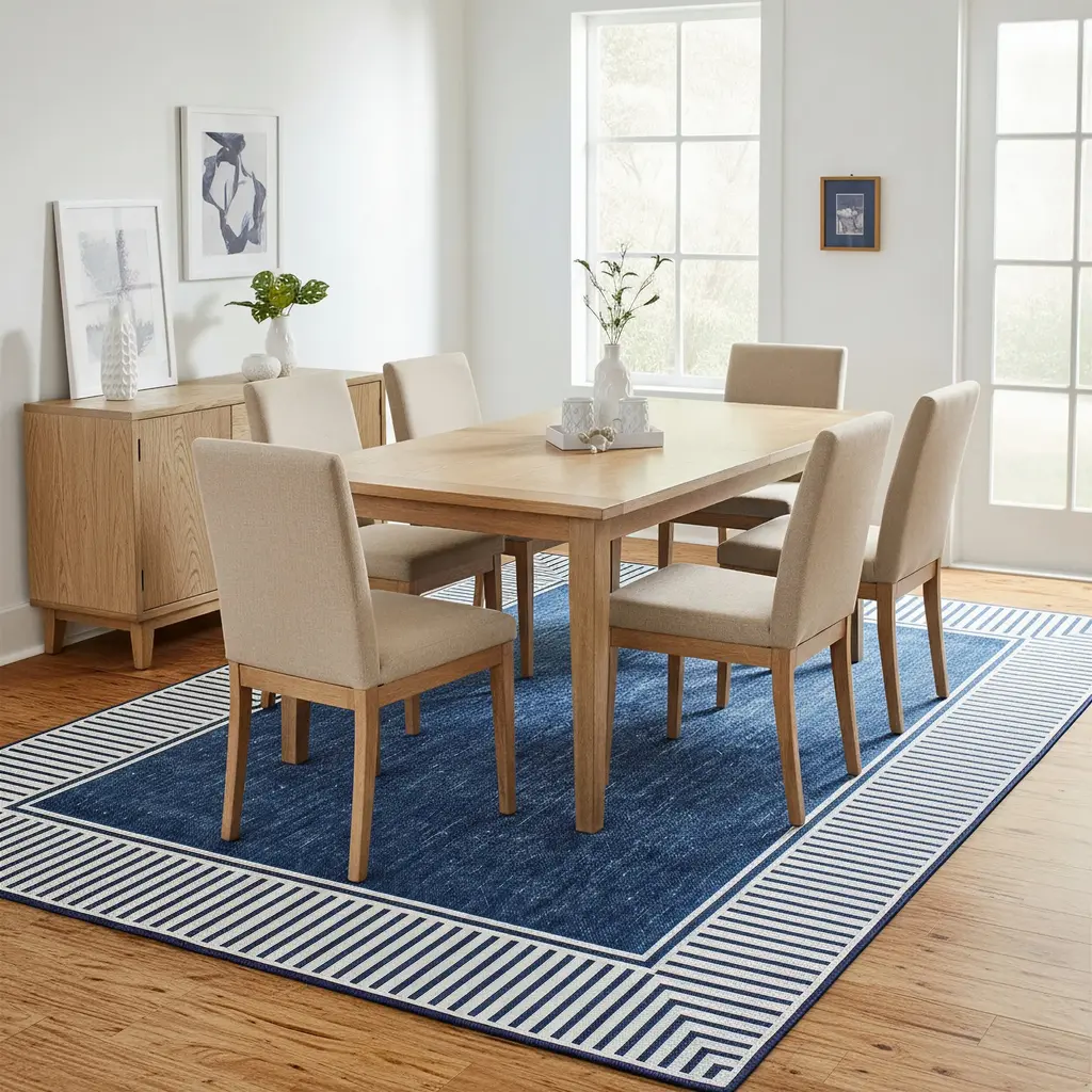 Striped Border Indoor/outdoor Flatweave Rug | Navy - 4' X 4'