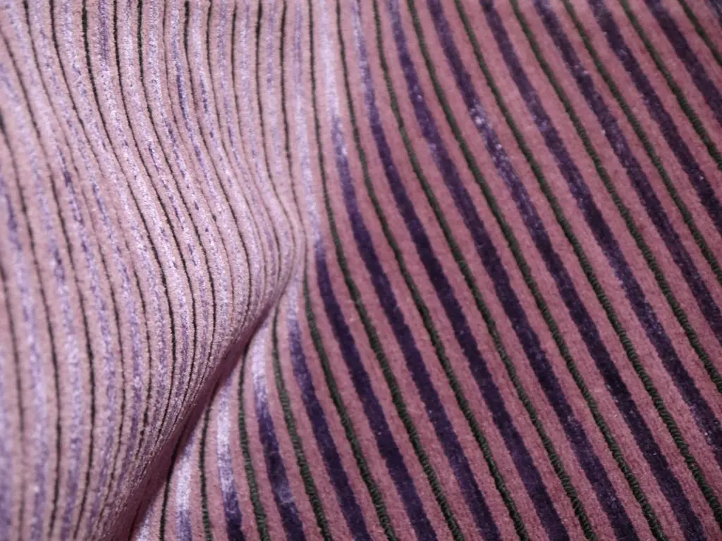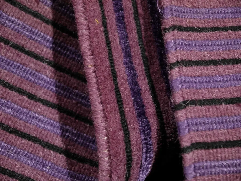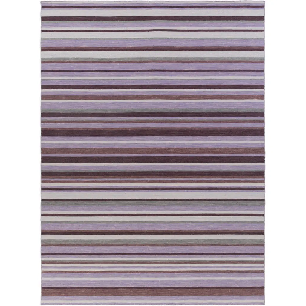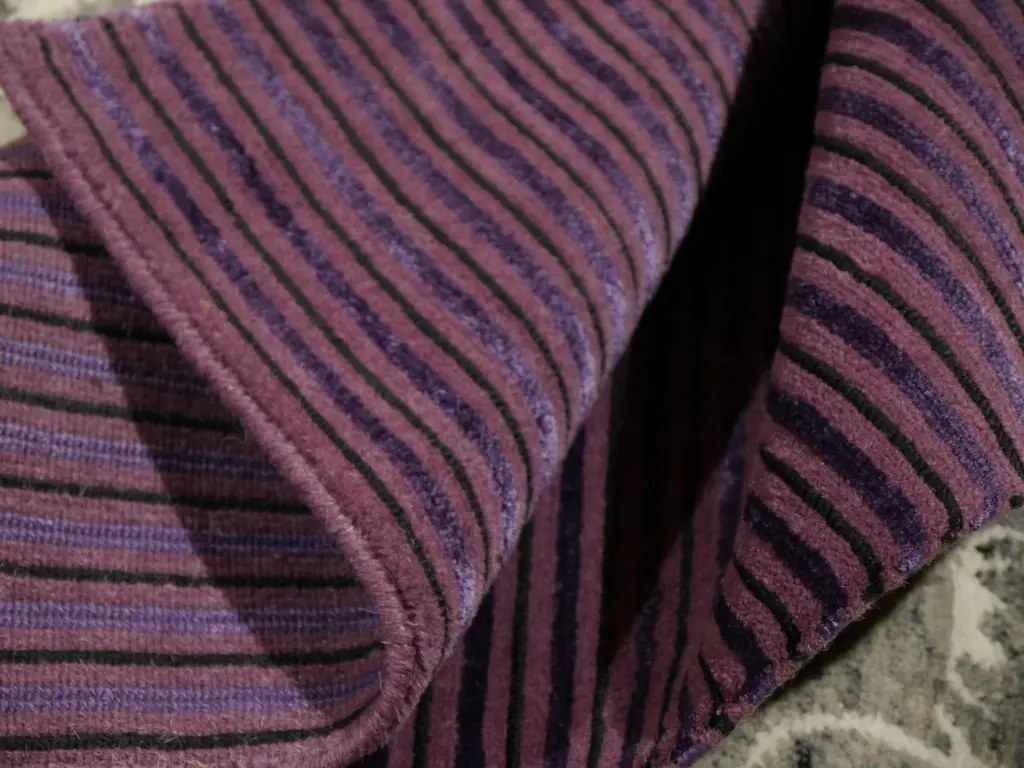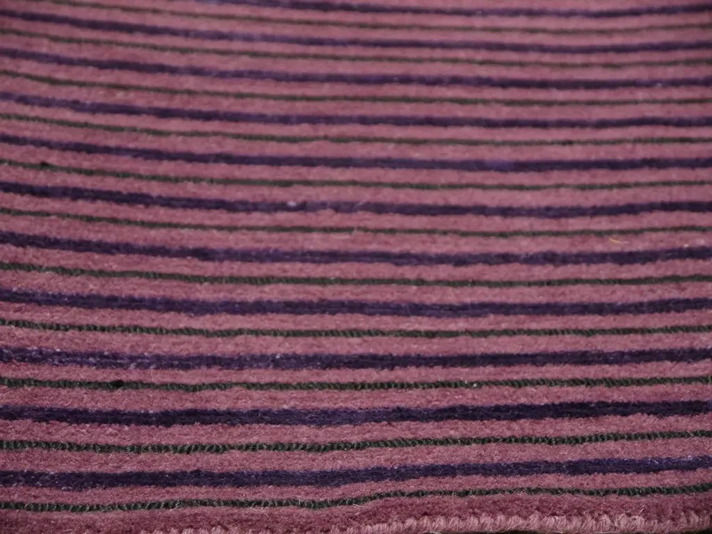 A beautiful contemporary modern design rug, hand knotted using finest wool bamboo silk in 3 x 2 ft / 90 x 60 cm.By Djoharian Design.Striped design rug hand-knotted in silk lilac variations.Striped rugs newer go out of style. In our contemporary colors they even look much better. We are offering the following standard sizes, delivery 3 - 4 month after confirmed order:5 x 3 ft, 6 x 4 ft, 7 x 5 ft, 7 x 7 ft, 8 x 8 ft, 8 x 6 ft, 9 x 6 ft, 10 x 8 ft, 11 x 8 ft, 9 x 12 ft, 10 x 14 ft.Our collection of luxurious carpets in the style of Stripe! are made in Nepal, Kathmandu by excellent artisans. Our Collection includes various designs and color palettes.The yarns were spun by hand on a traditional spinning weel in order to achieve the incomparable appearance of these carpets.The feel is soft and cozy thanks to the use of the finest material. The rug is approx. 1/4-1/3 inch high.Cubistic design carpet hand knotted.Design: Stripe!Collection: Djoharian DesignColors: Variations of lilacPile: 2/3 Tibetan highland wool, 1/3 bamboo silkSize: Available to order in the desired size. Other color combinations are possible.Underfloor heating: SuitablePerfect for loft or Industrial modern rooms. Looks fantastic on modern exposed concrete floors as well.Interior designers and architects are welcome to have this rug custom made in any size and color combination from 1200 different shades. We work with Pantone and RAL color systems.The Djoharian Design Collection is located in Germany, all our rugs are shipped from there. We are licensed FAIR-TRADE partner of LABEL STEP FAIR TRADE CARPETS. Label STEP is the fair-trade non-profit organization committed to the wellbeing of weavers and workers in the handmade carpet industry.