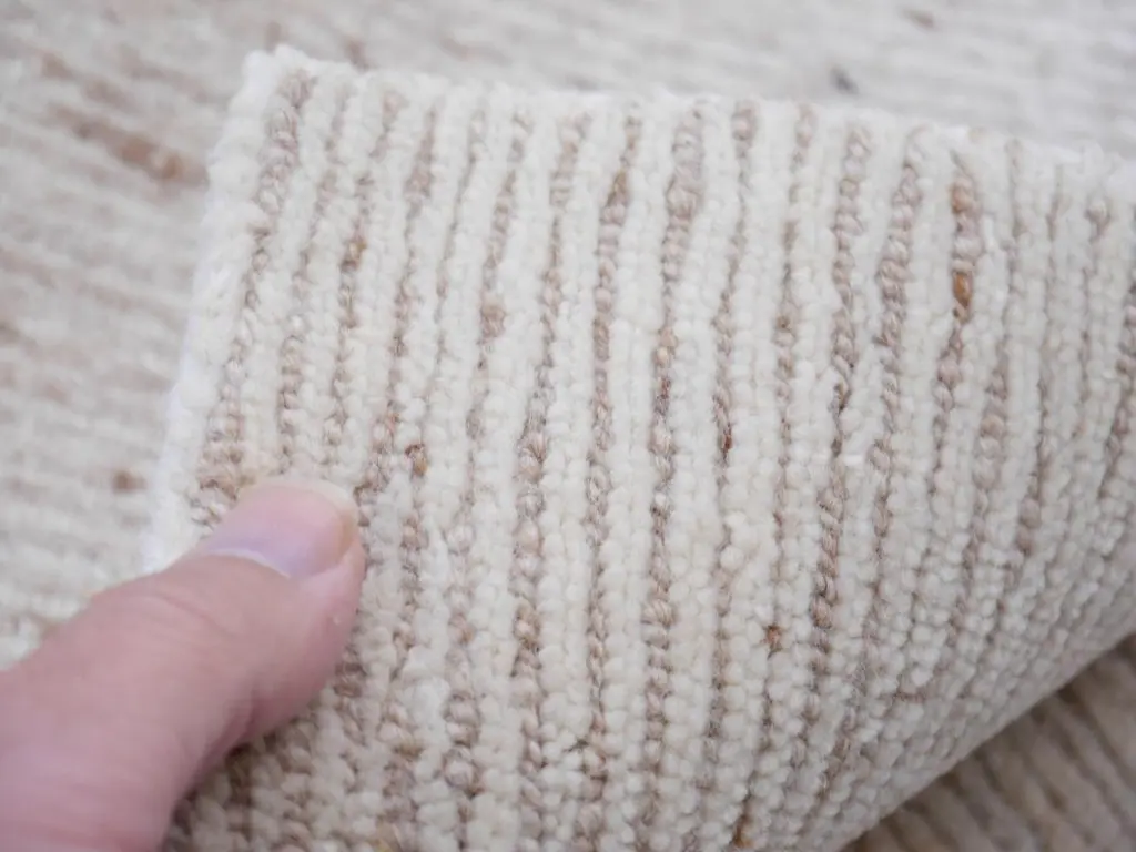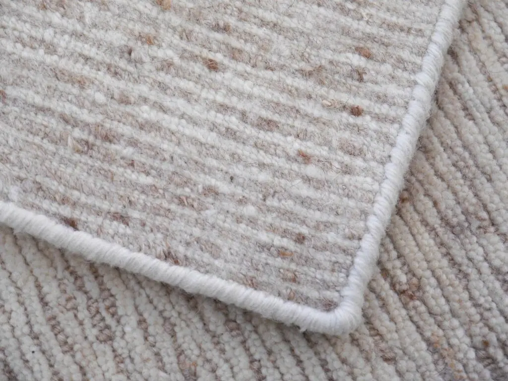 A beautiful contemporary modern design rug, hand-knotted using finest wool in 5 x 3 ft / 151 x 92 cm.Hand-knotted Japandi Style Rug – Beige & Brown Mélange, Premium Wool, FlatweaveAdd a touch of timeless elegance to your home with this handcrafted Japandi-style rug. The perfect blend of Japanese minimalism and Scandinavian functionality, this rug is designed to elevate your living space with understated beauty and exceptional craftsmanship.Key Features:Hand-knotted Flatweave Construction: Expertly crafted by skilled artisans, each rug is handwoven to ensure durability and a luxurious feel underfoot.Premium Wool: Made from the finest quality wool, this rug offers a soft, natural texture that enhances comfort while maintaining a sophisticated appearance.Beige & Brown Mélange: The warm, earthy tones of beige and brown create a calming, neutral palette that complements various interior styles, from modern to traditional.Japandi Aesthetic: This rug seamlessly blends Japanese and Scandinavian design principles, offering a minimalist look with clean lines and functional beauty.Sustainable & Eco-Friendly: Wool is a renewable and sustainable material, making this rug a responsible choice for eco-conscious homeowners.Benefits of Japandi Style:Japandi design promotes balance and serenity, merging the tranquility of Japanese interiors with the simplicity and functionality of Scandinavian design. This rug helps create a harmonious space, encouraging relaxation and mindfulness. Its neutral hues bring warmth and depth to any room, making it ideal for living rooms, bedrooms, or even as a statement piece in your entryway.Enhance Your Living Space:A Japandi rug is not just a functional item; it's a design statement that adds an element of sophistication and style to any room. The neutral color scheme and durable construction make it versatile, easy to pair with a variety of furnishings, and long-lasting. Whether you're updating your decor or starting fresh, this premium handwoven rug is the perfect choice for an elevated living experience.Transform your home with the understated luxury of this handwoven Japandi-style rug. Its timeless design and premium quality make it an essential addition to any modern home.By Djoharian Design.Striped design rug hand-knotted in beige and caramel. One row of knots is hand-knotted in plain beige wool and the knotted loops are cut open to get a soft pile, the next row of knots is knotted in closed loop, next again in beige and so on.Striped rugs newer go out of style. In our contemporary colors they even look much better. -> Available stock in 5 x 3 ft, ready to ship within 2 business daysYou may also order this rug with production and delivery time 3 - 4 month after confirmed order in these sizes (custom sizes also possible):5 x 3 ft, 6 x 4 ft, 7 x 5 ft, 7 x 7 ft, 8 x 8 ft, 8 x 6 ft, 9 x 6 ft, 10 x 8 ft, 11 x 8 ft, 9 x 12 ft, 10 x 14 ft.Our collection of luxurious CUT LOOP HAND-KNOTTED RUGS in the style of Stripe! are made in India by excellent artisans. Our Collection includes various designs and color palettes.The yarns were spun by hand on a traditional spinning wheel in order to achieve the incomparable appearance of these carpets.The feel is soft and cozy thanks to the use of the finest material. The rug is approx. 1/4-1/3 inch high.Design: Stripe!Collection: Djoharian DesignColors: Beige and caramelPile: 100% fine handspun New Zealand Merino woolSize: Available to order in the desired size. Other color combinations are possible.Underfloor heating: SuitablePerfect for loft or Industrial modern rooms. Looks fantastic on modern exposed concrete floors as well.Goes perfect with modern and contemporary interior design as well with traditional and classic.Interior designers and architects are welcome to have this rug custom made in any size and color combination from 1200 different shades. We work with Pantone and RAL color systems.The Djoharian Design Collection is located in Germany, all our rugs are shipped from there. We are licensed FAIR-TRADE partner of LABEL STEP FAIR TRADE CARPETS. Label STEP is the fair-trade non-profit organization committed to the wellbeing of weavers and workers in the handmade carpet industry.