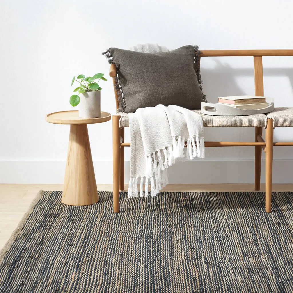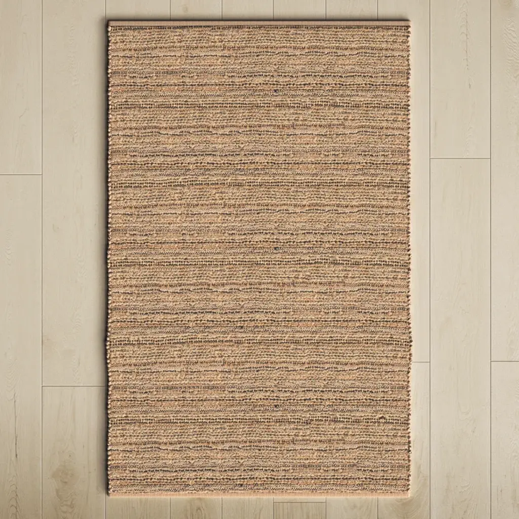 Handwoven jute stripes bring a hint of natural texture to your floor. Strong and durable but still soft underfoot, this low-profile area rug will fit with all contemporary styles due to its versatile coloration and simple pattern.