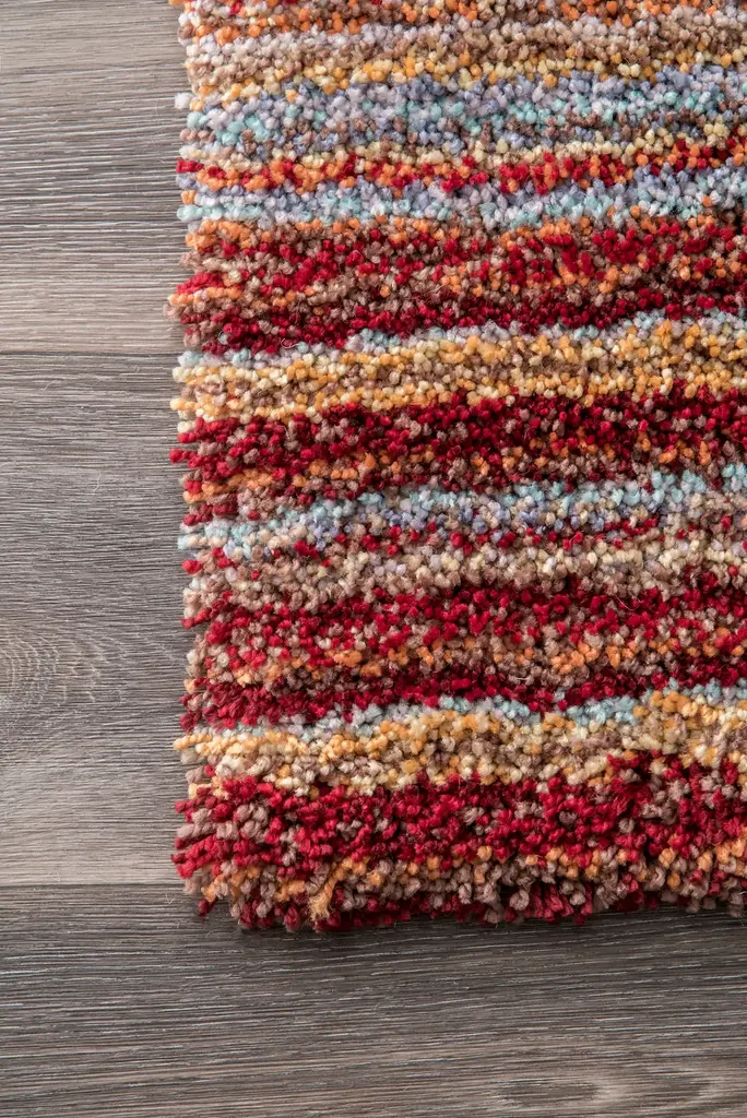 Striped Shaggy Rug | Red Multicolor - 4' X 6'