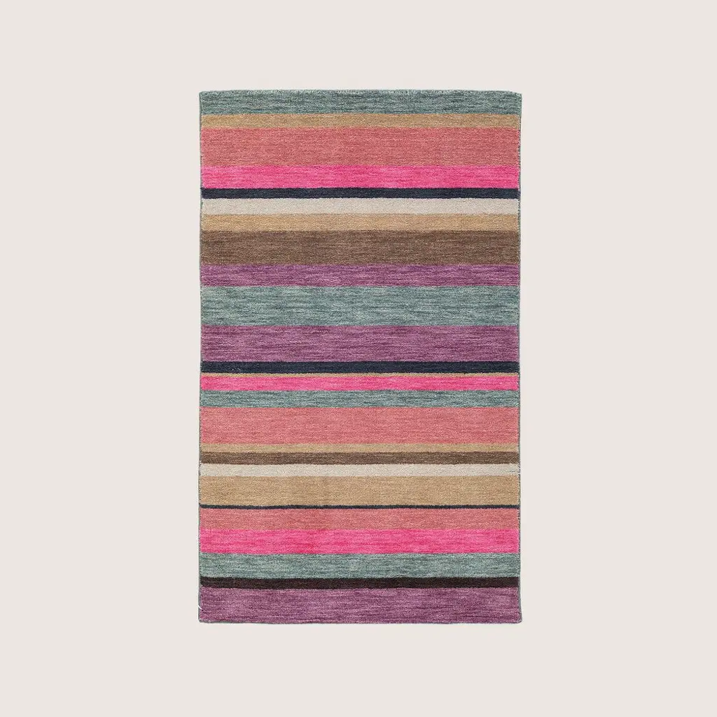 Stripes 32 is a rectangular wool rug.Zollanvari Super Fine Gabbeh quality.Stripes are archetypal Gabbeh patterns and one of the bastion designs in Zollanvari’s Gabbehs Geometric Collection. The combination of bands of colours merging in perfect harmony using varying degrees of abrash have a calmative effect that brings a modernist simplicity and enduring elegance to any interior.A Gabbeh is a hand-woven pile rug characterized by an abstract design that relies upon open fields of colour and playful geometry. Gabbehs are woven by tribal women and are principally used as ‘bedding blankets’ by the nomadic tribes of the Zagros Mountains of Iran, including Kurdish, Luri and Ghashgha’i people. Gabbehs are quintessentially Zollanvari and geometric designs are quintessential Gabbeh designs. Our Gabbehs come in different qualities. Our finest Gabbeh weave is Zollanvari Super Fine quality (referred to as Kashkuli after one of the Ghashgha’i tribes living in Fars province, southeast and northwest of Shiraz). Our Zollanvari Fine qualities (known as Amaleh after another Ghashgha’i tribe who produced high-quality artefacts for the Khans) are more coarsely knotted, but truly unique and individual in patterns and colour combinations.