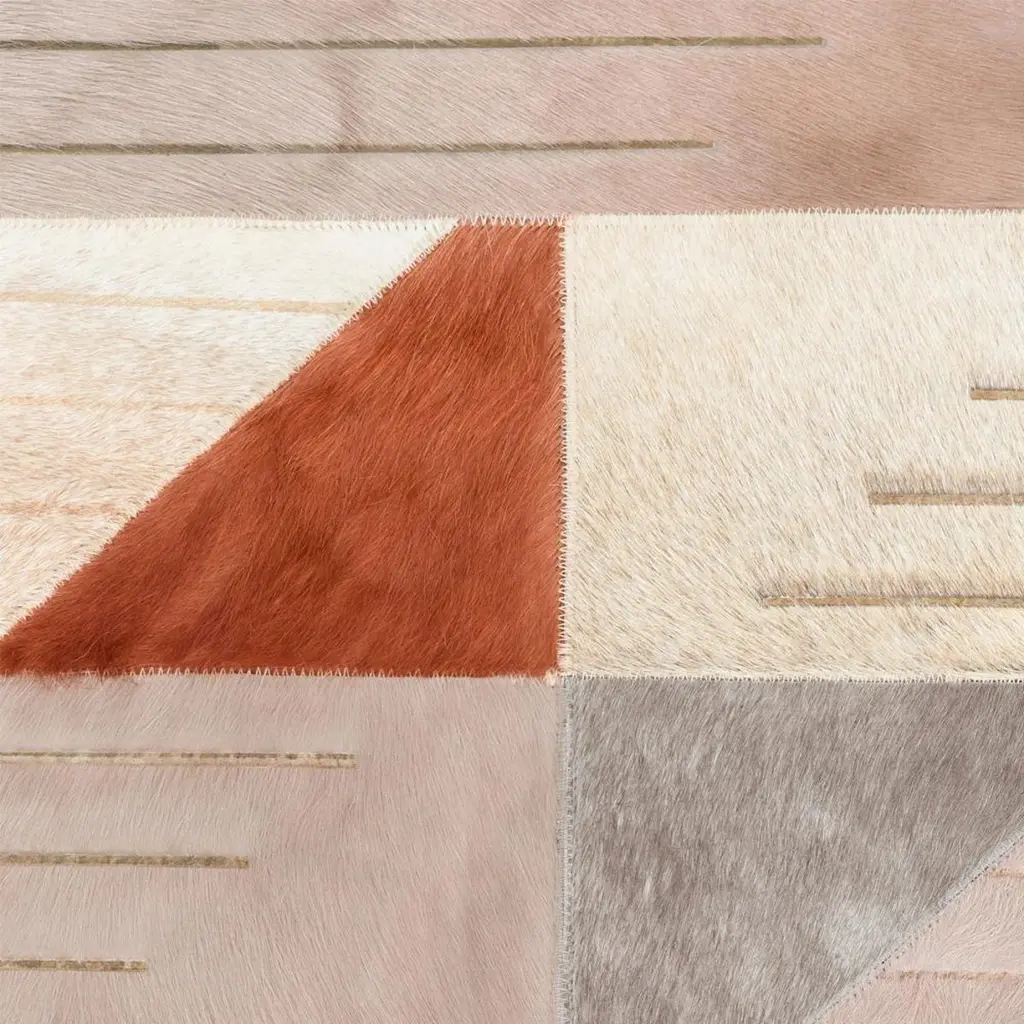 Cocorico combines the clean lines of modern architecture with the eccentric allure of the celebrity hotspot from which it gets its name. Whimsical with a touch of mid-century modern sensibility, the Cocorico rug is a timeless statement piece for any interior. The Cocorico palate features a lineal laser burn pattern on Cream and Mushroom colored hide, interspersed with triangles in Grey and Rust.Cocorico is stitched together using commercial grade nylon thread and features a branded ribbon edge finish. It can easily be customized to any colour, size or shape.The Altro Mondo Collection is a range of hide floor and wall coverings by Greg Natale for Art Hide. Classically stylish with an unconventional twist, Altro Mondo, meaning “other world” in Italian, is inspired by the innovative architecture and radical design ethos of famous Italian discotheques from the 1970s to the 1990s. Drawing from Brutalist, Postmodernist, and Space-Age aesthetics, the collection evokes the bold spirit embodied by these otherworldly spaces. Art Hide rugs are made to order. Please allow 4-6 weeks for delivery.