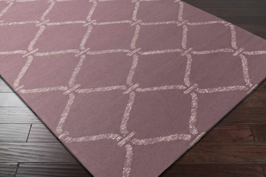 Collection: Stroudsburg Colors: Light Gray, Mauve Construction: Hand Woven Material: Face: 50% Wool, 30% Viscose, 20% Cotton Pile: No Pile Styles: Transitional Made In: India Thickness: 0.16" Price Range: $$$$$ (Affordable)
