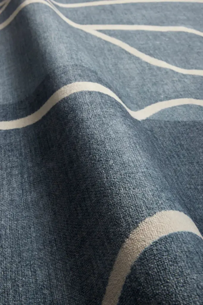 Tranquil and modern, our Strova Dusk Blue Rug is the perfect addition to any space. This stylish design features a thin and elegant ivory line that mimics the shape of an organic form sitting on bold shapes in a deep dusk blue. Water-resistant, stain-resistant, and machine-washable. Rug colors may vary slightly according to your device and the lighting in your space.