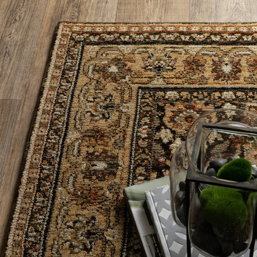 Adalynn is the results of an unprecedented weaving technology that removes the boundaries and color limitations of conventional woven rugs. Multiple yarn systems blend for a stunning range of over 200 colors and a dense, yet soft pile for a luxurious hand and beautiful finish. A beautiful area rug where vintage soul meets modern traditional styling in brilliant, saturated jewel tones. To maintain the look and feel of your rug, blot spills immediately with a clean white cloth, vacuum regularly and spot clean using a mild soap made for the specific rug fiber. Professionally clean occasionally or when heavily soiled.Features:Traditional style indoor area rugPersian inspired oriental patternPower-loomed from a polypropylene and nylon blendDurable, stain, fade and wear-resistant for fuss-free maintenanceFeatures shades of brown, gold, ivory, rust, red, green, black, greyCleaning and Installation:If spills occur, blot as much of the stain as possible with a clean cloth. Use a small amount of mild soap and water to clean the area. If needed, rug and carpet cleaners that are safe for synthetic materials may be used. As with anything, use sparingly and in a small, inconspicuous area first to test results before applying to the entire rug. Blot dry with clean cloth. The use of a rug pad is recommended; initial creasing is normal, and these will generally fall out within a few days to a week; tightly reversing rolling the rug (pile side out) and leaving in warm area for several hours will aid in the removal of creases or lingering fold marks.Disclaimer:Due to the difference of monitor colors, some rug colors may vary slightly. We try to represent all rug colors as accurately as possible. All rug sizes are approximate. Sizes may vary +/- 1-3 inches due to weather, climate, and physical conditions at time of production and shipping.