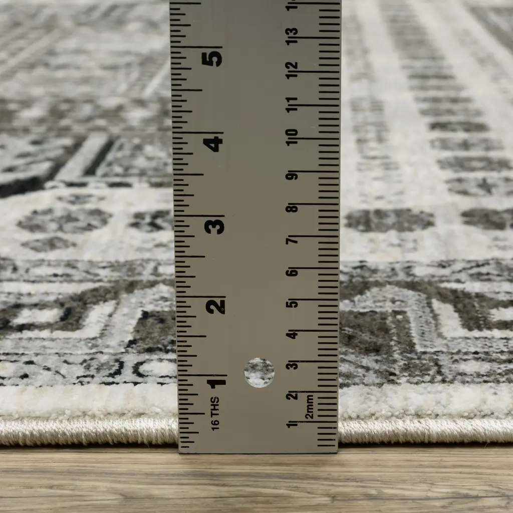 Experience the plush comfort of the Cádiz collection. These rugs are power-loomed using incredibly soft polyester yarns that are space-dyed in a range of neutral shades. The multi-level shrink polyester accents add texture to the global traditional designs, making them a stunning addition to any space.Features:Vintage, global inspired style indoor area rugGeometric, nomadic tribal patternPower-loomed of incredibly soft 100% polyester yarnsFeatures a dense, low profile, million-point constructionColors include shades of ivory, beige, gray, charcoalCleaning and Installation:If spills occur, blot as much of the stain as possible with a clean cloth. Use a small amount of mild soap and water to clean the area. If needed, rug and carpet cleaners that are safe for synthetic materials may be used. As with anything, use sparingly and in a small, inconspicuous area first to test results before applying to the entire rug. Blot dry with clean cloth. The use of a rug pad is recommended; initial creasing is normal, and these will generally fall out within a few days to a week; tightly reversing rolling the rug (pile side out) and leaving in warm area for several hours will aid in the removal of creases or lingering fold marks.Disclaimer:Due to the difference of monitor colors, some rug colors may vary slightly. We try to represent all rug colors as accurately as possible. All rug sizes are approximate. Sizes may vary +/- 1-3 inches due to weather, climate, and physical conditions at time of production and shipping.