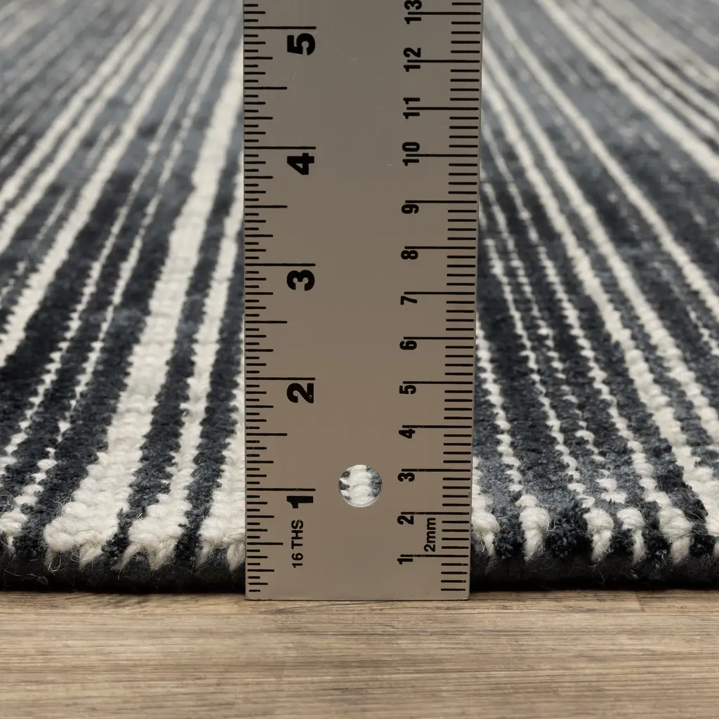 Style Haven Corey Textural Stripe Wool And Viscose Hand-Tufted Rug - 10' X 13' - Black/ Ivory - Rectangle