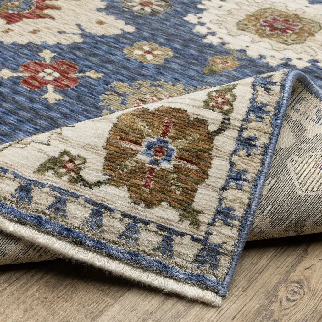 Style Haven Henretta Bordered Floral Blue/ Ivory Fringe Edge Area Rug - 6' 7" X 9' 6" - Rectangle