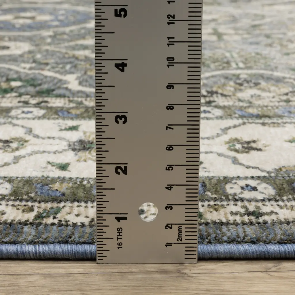 Style Haven Henretta Bordered Traditional Fringe Edge Area Rug - 3' 10" X 5' 5" - Blue/ Grey - Rectangle