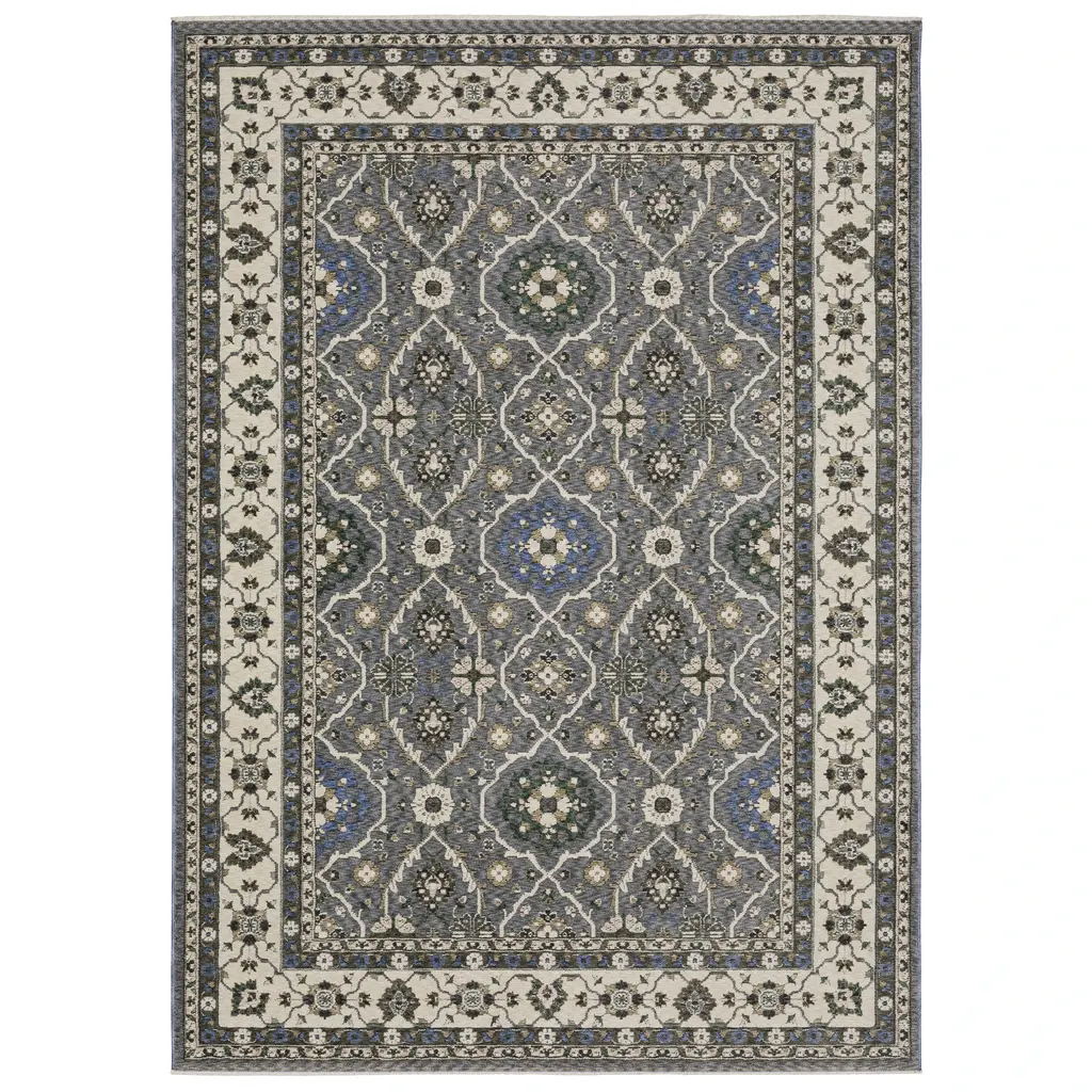 Style Haven Henretta Bordered Traditional Fringe Edge Area Rug - 7' 10" X 10' 10" - Blue/ Grey - Rectangle
