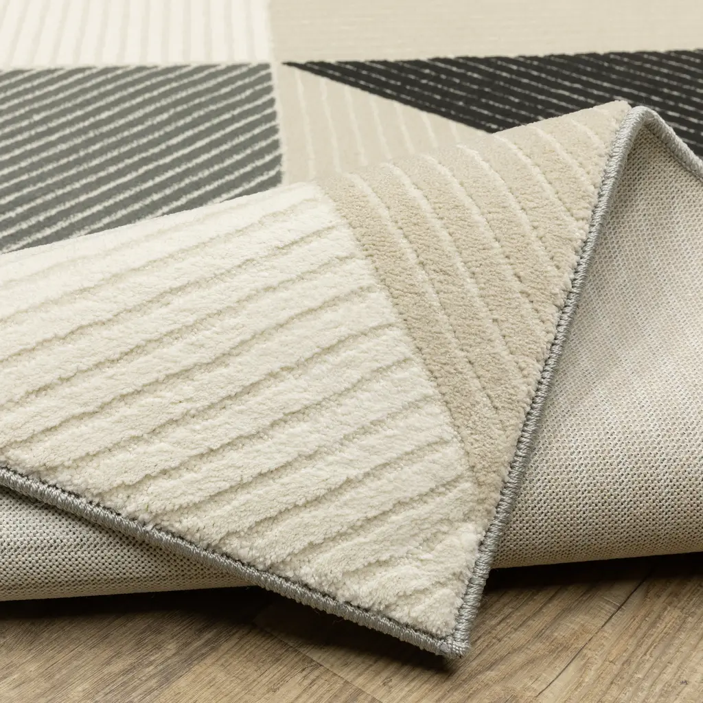 Create refined dimension in your space with the Ripley collection. These power-loomed rugs feature classic Persian, global, and geometric designs in contrasting black and ivory tones, along with soft blues, grays, and neutrals for added versatility.Features:Modern, contemporary style indoor area rugGeometric block and lines patternPower-loomed from a polypropylene and polyester blend with a woven polypropylene backingDimensional high low pile offers texture and dimensionAvailable in two color optionsCleaning and Installation:If spills occur, blot as much of the stain as possible with a clean cloth. Use a small amount of mild soap and water to clean the area. If needed, rug and carpet cleaners that are safe for synthetic materials may be used. As with anything, use sparingly and in a small, inconspicuous area first to test results before applying to the entire rug. Blot dry with clean cloth. The use of a rug pad is recommended; initial creasing is normal, and these will generally fall out within a few days to a week; tightly reversing rolling the rug (pile side out) and leaving in warm area for several hours will aid in the removal of creases or lingering fold marks.Disclaimer:Due to the difference of monitor colors, some rug colors may vary slightly. We try to represent all rug colors as accurately as possible. All rug sizes are approximate. Sizes may vary +/- 1-3 inches due to weather, climate, and physical conditions at time of production and shipping.