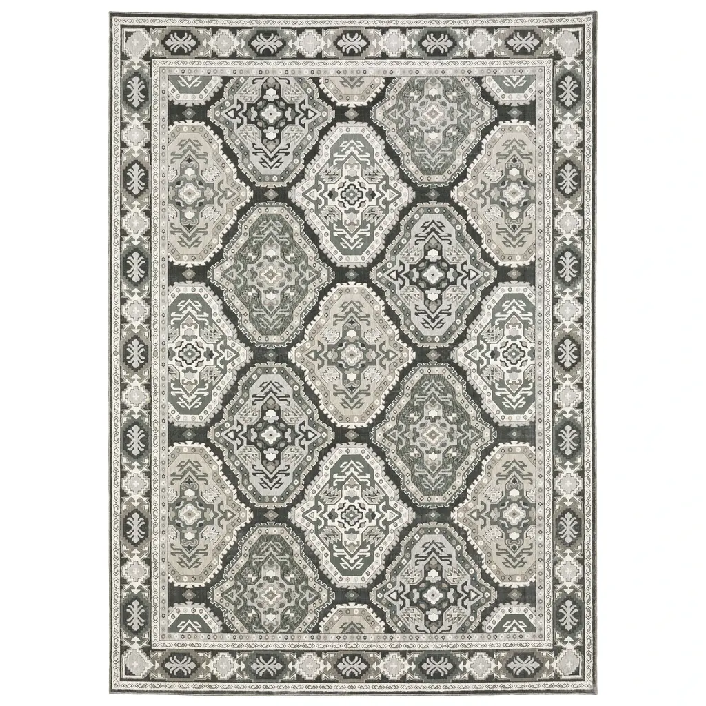 Create refined dimension in your space with the Ripley collection. These power-loomed rugs feature classic Persian, global, and geometric designs in contrasting black and ivory tones, along with soft blues, grays, and neutrals for added versatility.Features:Global, traditional and Moroccan style indoor area rugMoroccan inspired Persian patternPower-loomed from a polypropylene and polyester blend with a woven polypropylene backingDimensional high low pile offers texture and dimensionFeatures shades of grey, blue, ivory, charcoal, beige, blackCleaning and Installation:If spills occur, blot as much of the stain as possible with a clean cloth. Use a small amount of mild soap and water to clean the area. If needed, rug and carpet cleaners that are safe for synthetic materials may be used. As with anything, use sparingly and in a small, inconspicuous area first to test results before applying to the entire rug. Blot dry with clean cloth. The use of a rug pad is recommended; initial creasing is normal, and these will generally fall out within a few days to a week; tightly reversing rolling the rug (pile side out) and leaving in warm area for several hours will aid in the removal of creases or lingering fold marks.Disclaimer:Due to the difference of monitor colors, some rug colors may vary slightly. We try to represent all rug colors as accurately as possible. All rug sizes are approximate. Sizes may vary +/- 1-3 inches due to weather, climate, and physical conditions at time of production and shipping.