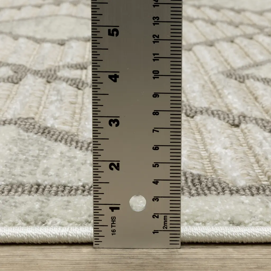 Thassos offers an on-trend neutral color palette combined with sleek global patterns that will elevate any decor style.Power-loomed from 100% polypropylene using textured multi-tonal lustrous yarns,Thassos creates visually intriguing areas within its plush cut pile construction,and flat woven loop textures.Features:Transitional style indoor area rugTonal textured geometric diamond patternPower-loomed from 100% polypropylene with a woven polypropylene backingDimensional high low pile offers texture and dimensionFeatures shades of beige, grey, ivory, tan, light brownCleaning and Installation:If spills occur, blot as much of the stain as possible with a clean cloth. Use a small amount of mild soap and water to clean the area. If needed, rug and carpet cleaners that are safe for synthetic materials may be used. As with anything, use sparingly and in a small, inconspicuous area first to test results before applying to the entire rug. Blot dry with clean cloth. The use of a rug pad is recommended; initial creasing is normal, and these will generally fall out within a few days to a week; tightly reversing rolling the rug (pile side out) and leaving in warm area for several hours will aid in the removal of creases or lingering fold marks.Disclaimer:Due to the difference of monitor colors, some rug colors may vary slightly. We try to represent all rug colors as accurately as possible. All rug sizes are approximate. Sizes may vary +/- 1-3 inches due to weather, climate, and physical conditions at time of production and shipping.