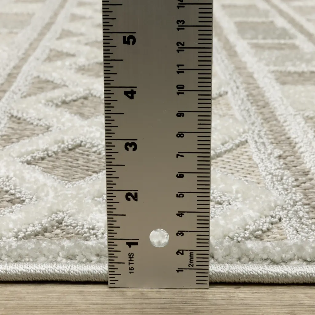 Thassos offers an on-trend neutral color palette combined with sleek global patterns that will elevate any decor style. Power-loomed from 100% polypropylene using textured multi-tonal lustrous yarns, Thassos creates visually intriguing areas within its plush cut pile construction, and flat woven loop textures.Features:Cleaning and Installation: If spills occur, blot as much of the stain as possible with a clean cloth. Use a small amount of mild soap and water to clean the area. If needed, rug and carpet cleaners that are safe for synthetic materials may be used. As with anything, use sparingly and in a small, inconspicuous area first to test results before applying to the entire rug. Blot dry with clean cloth. The use of a rug pad is recommended; initial creasing is normal, and these will generally fall out within a few days to a week; tightly reversing rolling the rug (pile side out) and leaving in warm area for several hours will aid in the removal of creases or lingering fold marks. Disclaimer: Due to the difference of monitor colors, some rug colors may vary slightly. We try to represent all rug colors as accurately as possible. All rug sizes are approximate. Sizes may vary +/- 1-3 inches due to weather, climate, and physical conditions at time of production and shipping.