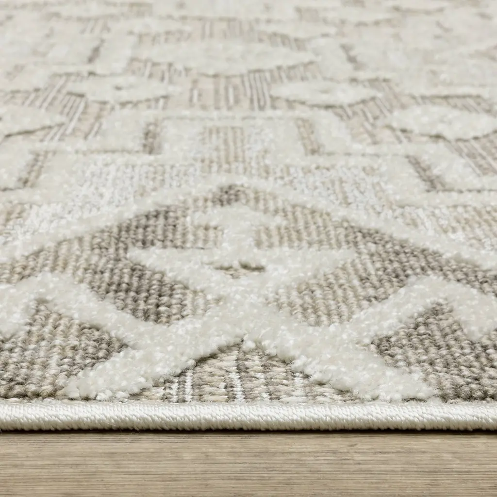 -Thassos offers an on-trend neutral color palette combined with sleek global patterns that will elevate any decor style. Power-loomed from 100% polypropylene using textured multi-tonal lustrous yarns, Thassos creates visually intriguing areas within its plush cut pile construction, and flat woven loop textures.Features:Cleaning and Installation: If spills occur, blot as much of the stain as possible with a clean cloth. Use a small amount of mild soap and water to clean the area. If needed, rug and carpet cleaners that are safe for synthetic materials may be used. As with anything, use sparingly and in a small, inconspicuous area first to test results before applying to the entire rug. Blot dry with clean cloth. The use of a rug pad is recommended; initial creasing is normal, and these will generally fall out within a few days to a week; tightly reversing rolling the rug (pile side out) and leaving in warm area for several hours will aid in the removal of creases or lingering fold marks. Disclaimer: Due to the difference of monitor colors, some rug colors may vary slightly. We try to represent all rug colors as accurately as possible. All rug sizes are approximate. Sizes may vary +/- 1-3 inches due to weather, climate, and physical conditions at time of production and shipping.