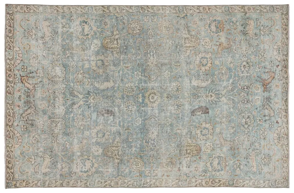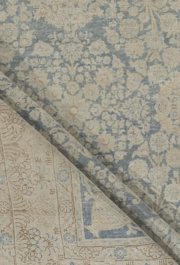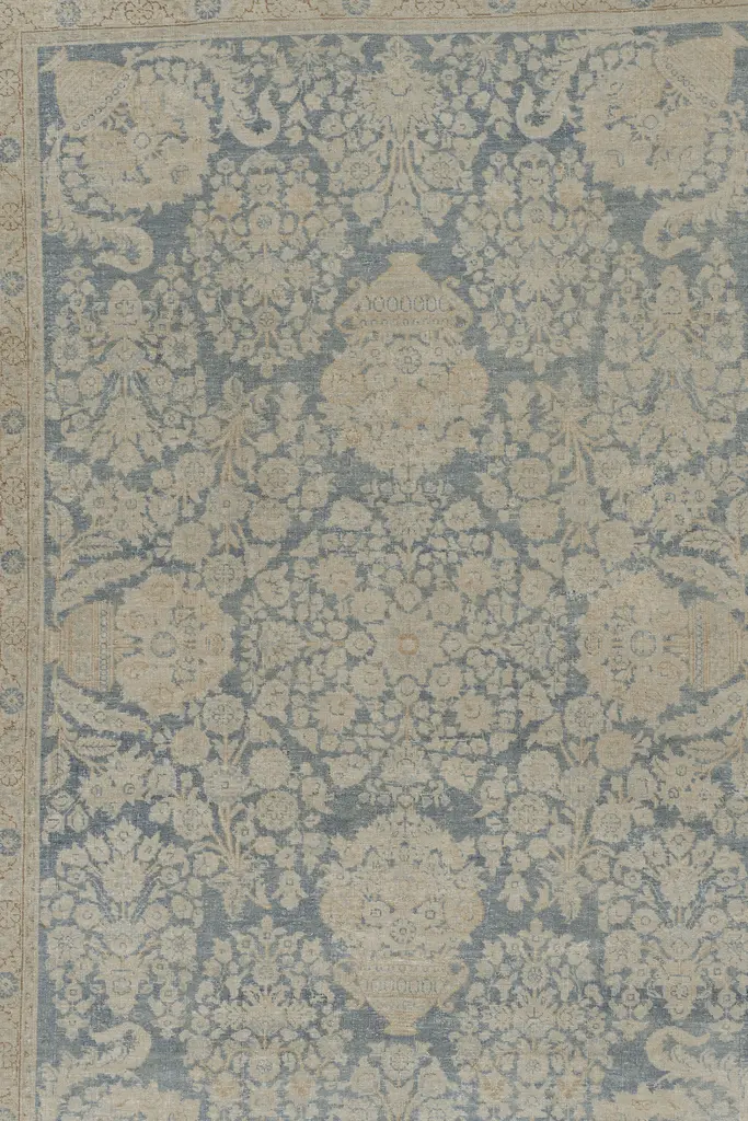 Tabriz means many things to rug enthusiasts: classical antique Persian carpets of the 16th century now in museums, decorative medallion carpets from the 19th century popular with designers worldwide, fine quality silk rugs as much wall hangings as floor coverings, and medium-priced goods for the middle market. The Persian carpet revival began in Tabriz around 1870 and Tabriz carpet merchants were instrumental in the renaissance of the craft throughout Iran. Colors: blues/beige/tan