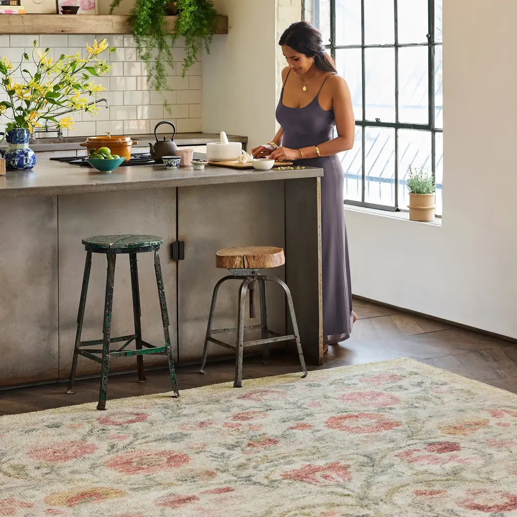 From Padma Lakshmi's exclusive collection, the Sufi rug is a celebration of floral motifs and flowing movement. Inspired by traditional Persian artistry, it features a curated blend of warm tones and intricate design, making it a striking yet approachable centerpiece.