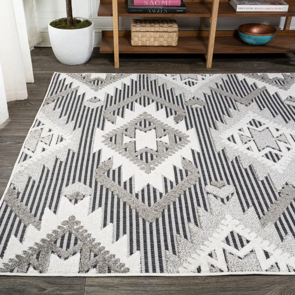 Sumak High-Low Neutral Diamond Indoor/outdoor Area Rug, Gray/white/black, 8'x10'