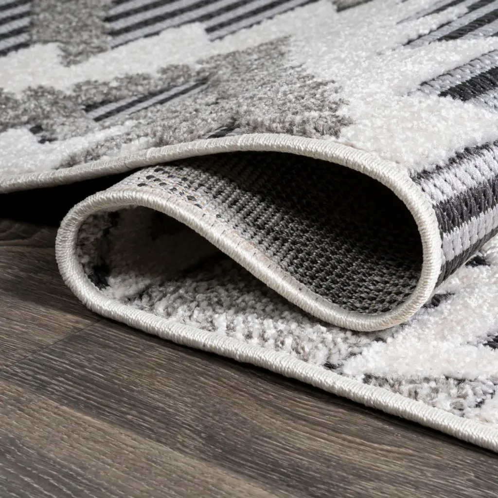 Inspired by ancient kilim rugs, our family-friendly geometric rug is power-loomed with a short pile. The all-over pattern is woven in a modern, neutral color palette. Add some graphic mid-century punch to your living room, dining room, entry, or bedroom with this easy-care rug. Features:• Power loomed with a 0. 31" pile that''s soft and durable• The dark gray and ivory color scheme is a modern take on neutral, graphic Moroccan rugs• Made from easy-care polypropylene - just sweep, vacuum or hose down with mild soap and water• 100% Polypropylene• No backing, use of rug pad is recommended (sold separately)• Power Loomed in Turkey• Actual Dimension: 3 ft. 11 in. x 6 ft. • Color: Gray/White/Black• Thickness measures: 0. 31 in. • Available in multiple sizes and/or colorsRug Care:• Vacuum regularly and spot clean as needed; avoid direct and continuous exposure to sunlight; use brushless vacuum; remove spills immediately; if liquid, blot with clean, undyed cloth by pressing firmly around the spill to absorb as much as possible; for hard to remove stains, professional rug cleaning is recommended; store in a dry, well ventilated area and rotate for consistent wear• Packing and shipping may cause temporary creases in rugs, which will flatten out after a week on the floor; to expedite the process, try back-rolling your rug before laying it down, and then allow ample time for the remaining creases to relax• Please Note: Due to differences in monitors, some rug colors may vary slightly. Lengths and widths may vary from the published dimensions. Patterns may vary slightly according to shape and size selected. About us:Style your floors with JONATHAN Y. By combining fine craftsmanship and design, this New York creative studio is bringing fashion to your floors. The collection mixes sustainable organic materials, vibrant colors and trend worthy styles to create JONATHAN Y''s distinctive catalog of rugs.