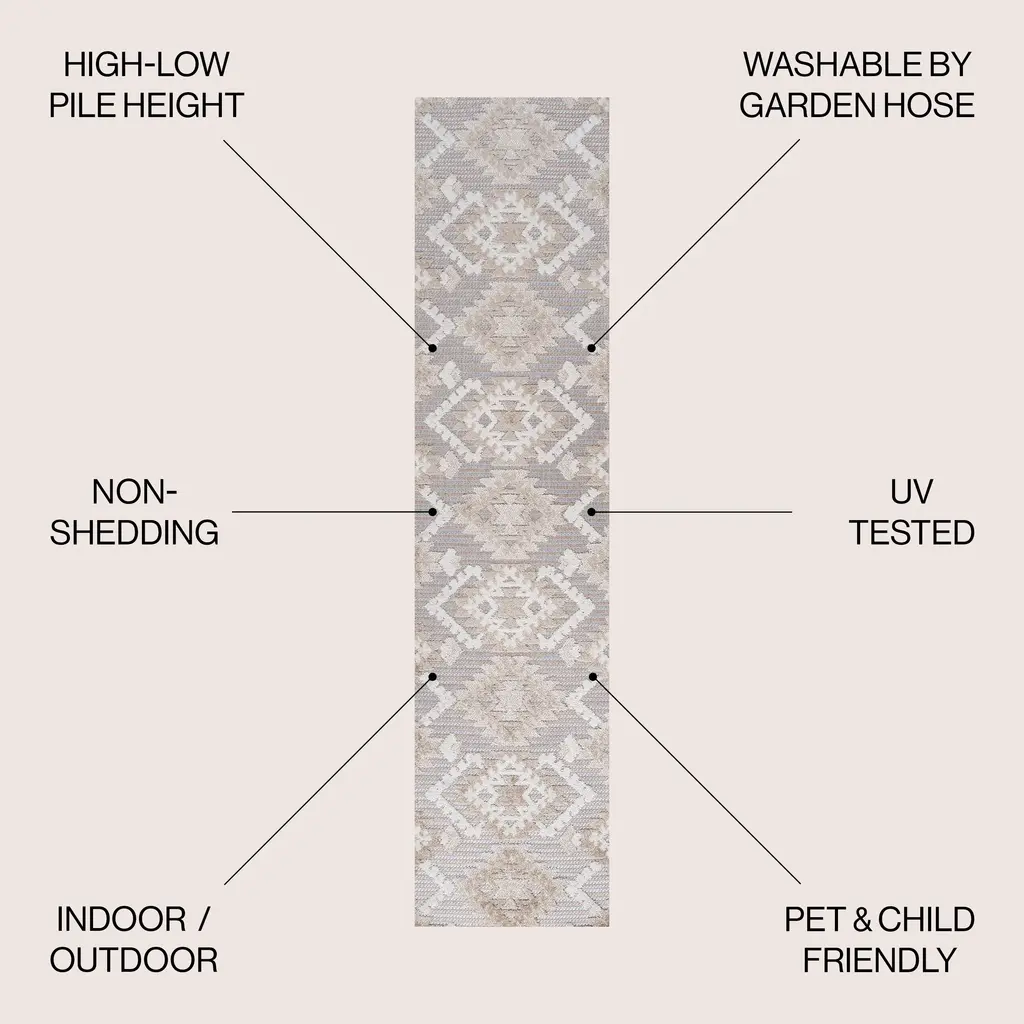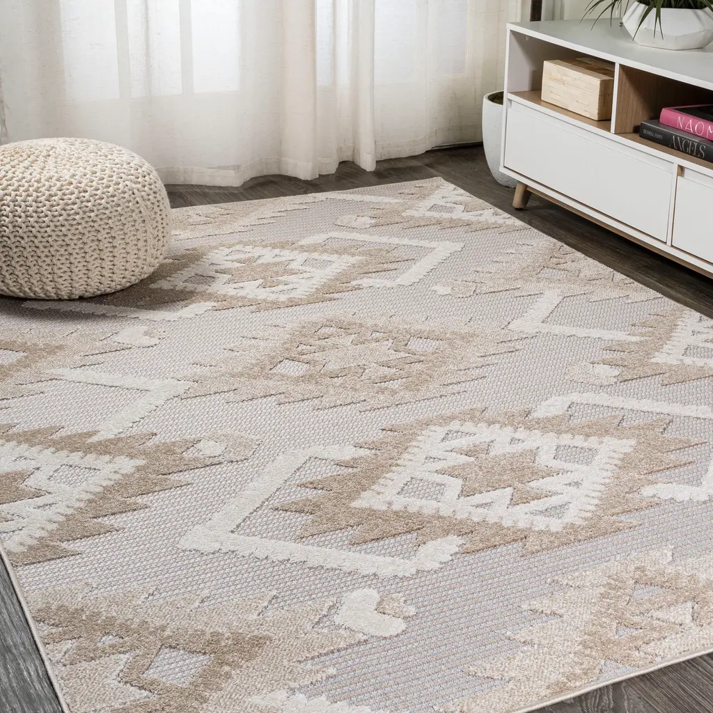 Sumak High-Low Pile Neutral Diamond Kilim Indoor/outdoor Area Rug - Brown / 5 X 8