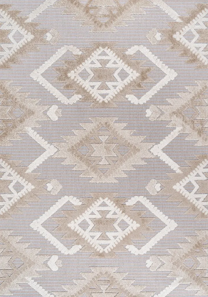 Sumak High-Low Pile Neutral Diamond Kilim Indoor/outdoor Area Rug - Gray / 8 X 10