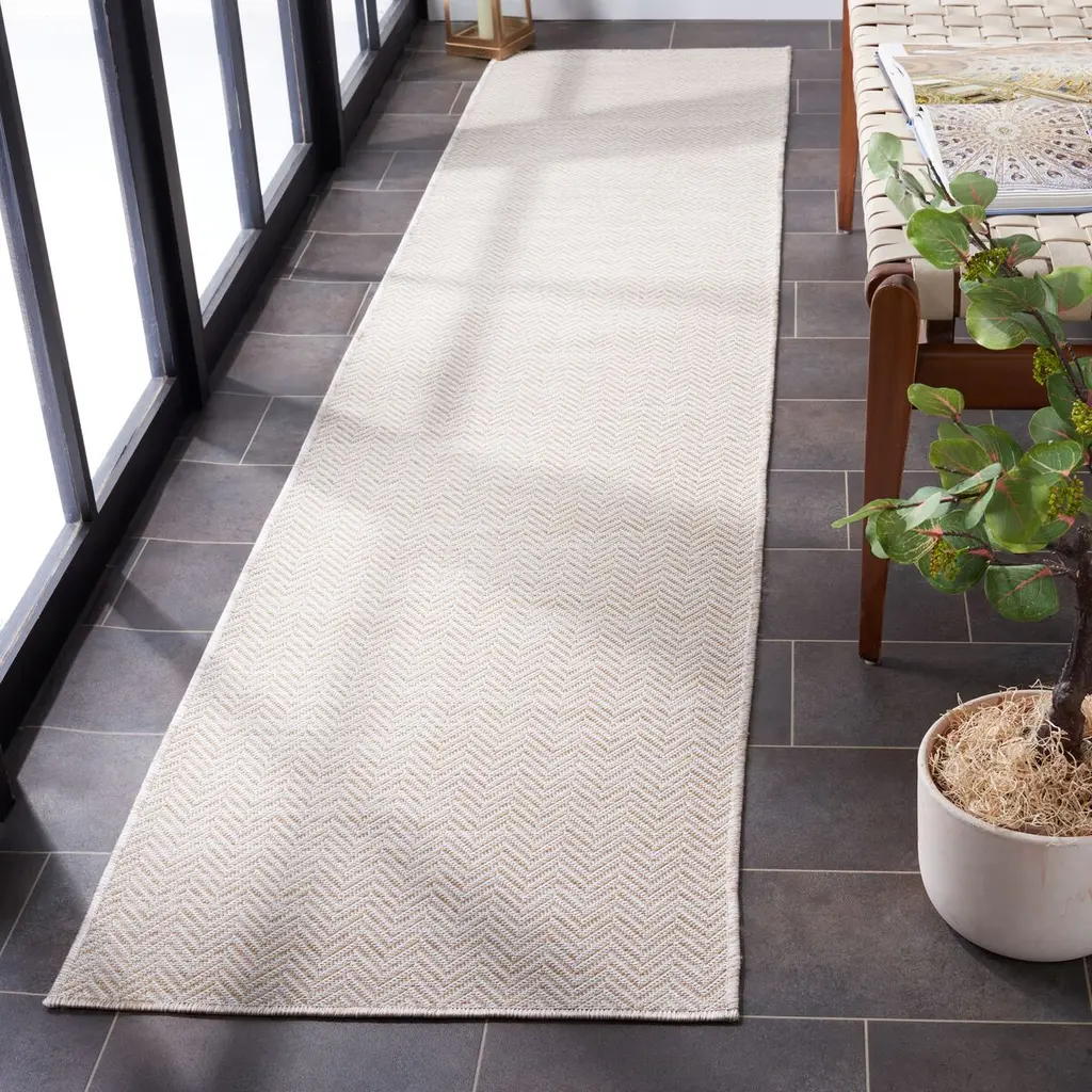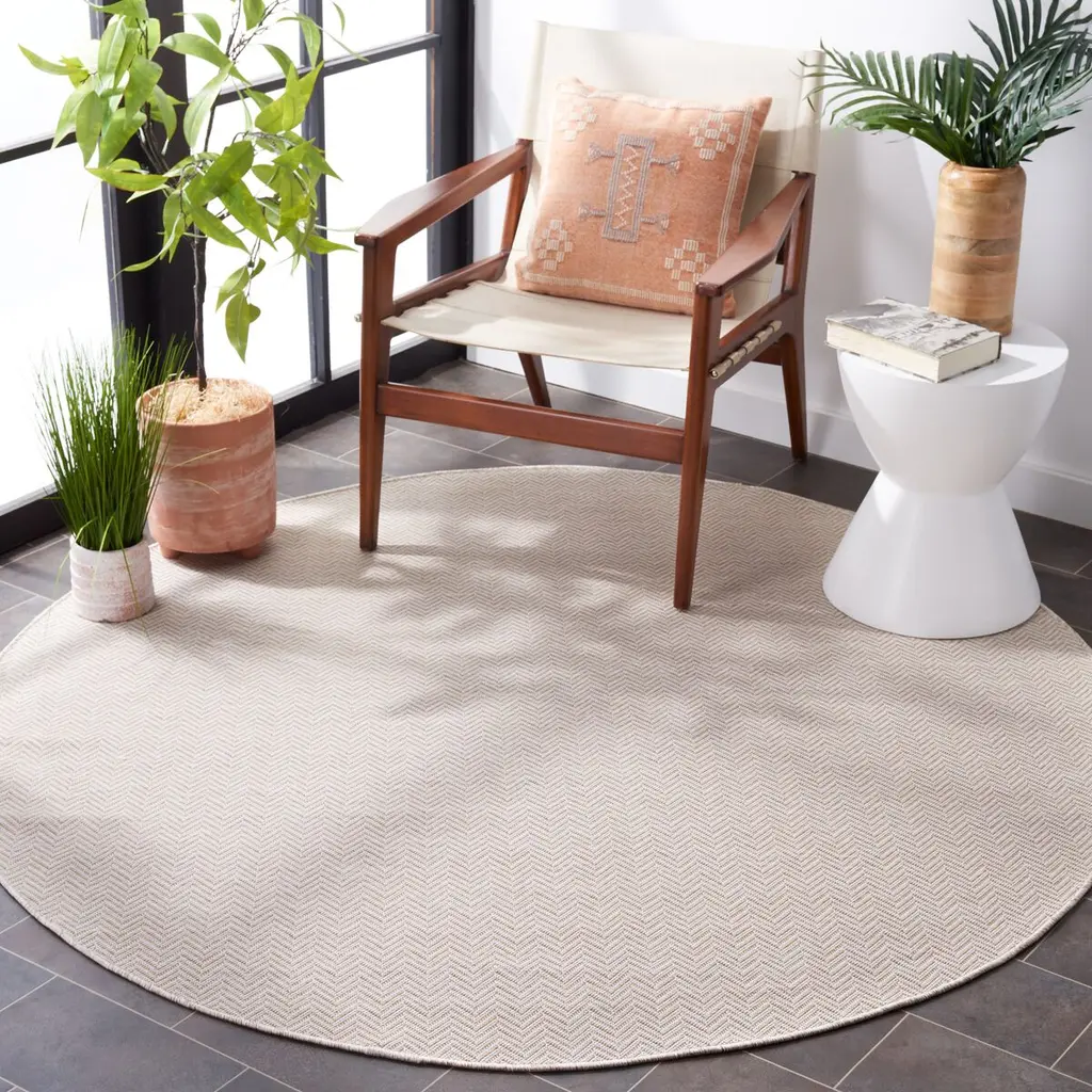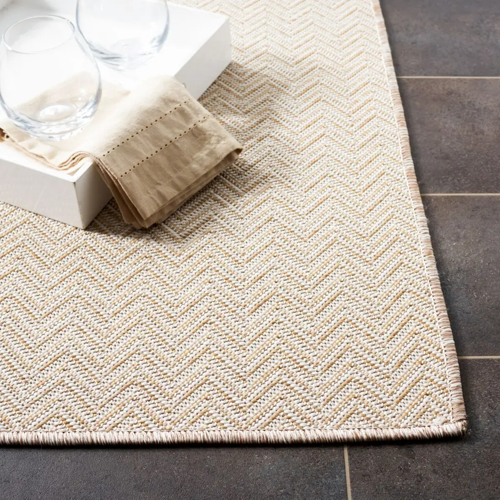 Tonal variations add depth and artisanal appeal to this durable chevron-patterned rug. Designed to withstand the elements, it will bring flair to high-traffic outdoor and indoor spaces alike. The rug is especially easy to clean: You can even hose it down. Latex backing adds to its longevity. The rug is Oeko-Tex Standard 100 certified, meaning it has been tested for harmful substances.