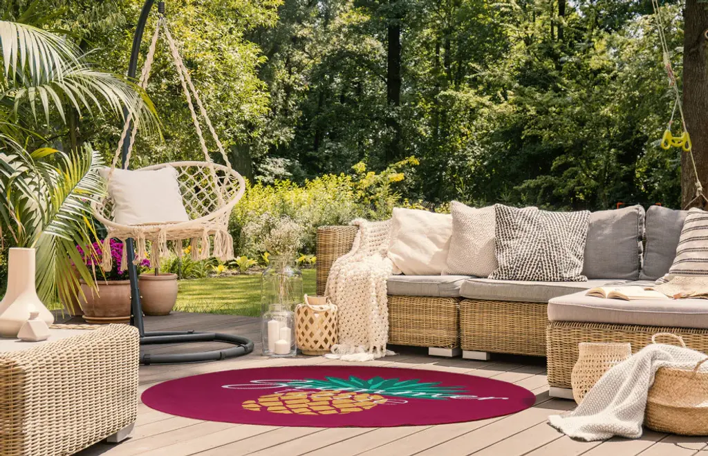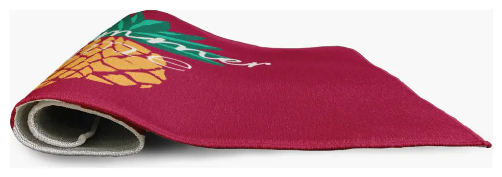 Create a lively tropical spirit and an inviting breezy atmosphere in your home with a Summer Time Pineapple Indoor/outdoor Rug from our Tropical Resort Collection. Everyone will delight in the space defining design brought to your porch, patio, kitchen, or bathroom by this area rug. The artistic and colorful design is printed on a soft polyester base with a skid resistant backing, making it a perfect way to add color, flare and personality to any indoor or outdoor space. To clean, use a mild soap and lay flat to dry.