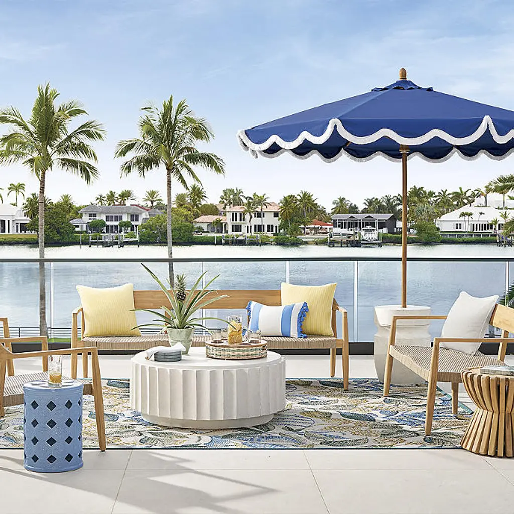 A colorful accent to any decor, this rug features a vibrant floral design with richly blended colors that will add vitality to any space inside or outside the home. Machine woven of weather-resistant fiber, it provides softness and durability while also being fade resistant and easy to clean. 75% polypropylene, 25% polyester Color: Cream with Yellow, Blue, & Green accents Navy with Yellow, Blue, & Green accents 0.125" thick Finished edges Rug pad recommended (sold separately) Vacuum regularly or gently rinse with a solution of mild detergent and water and air dry Imported A Frontgate exclusive. At Frontgate, our primary focus is quality. We guarantee that every product we sell will stand up to the supreme test – our customers' satisfaction. To learn more about our policies, visit our Shipping & Processing, Returns & Exchanges and Warranty & Price Guarantee pages. A colorful accent to any decor, this rug features a vibrant floral design with richly blended colors that will add vitality to any space inside or outside the home. Machine woven of weather-resistant fiber, it provides softness and durability while also being fade resistant and easy to clean. 75% polypropylene, 25% polyester Color: Cream with Yellow, Blue, & Green accents Navy with Yellow, Blue, & Green accents 0.125" thick Finished edges Rug pad recommended (sold separately) Vacuum regularly or gently rinse with a solution of mild detergent and water and air dry Imported A Frontgate exclusive. At Frontgate, our primary focus is quality. We guarantee that every product we sell will stand up to the supreme test – our customers' satisfaction. To learn more about our policies, visit our Shipping & Processing, Returns & Exchanges and Warranty & Price Guarantee pages.