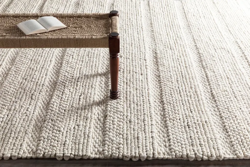 A solid design allows the rich texture of this handwoven wool piece to take center stage. A particularly versatile design, this piece will complement traditional and contemporary interiors alike. A rug pad is recommended to keep this securely in place.