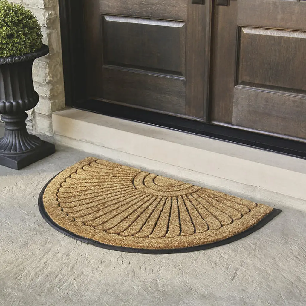 Our Sunburst Half-round Coco Door Mat traps dirt at the door with rugged coir. Harvested from coconut husks, natural coir fibers are a preferred choice for entry mats and rugs.Extremely durable welcome mats stand up to high-traffic entrywaysStrong rubber backing grips on the top reduce shedding, grips on the bottom of the mat prevent skiddingTraps dirt and mud in a spatially pleasing half-round shapeHydraulically pressed high-grade fibers create a compact 3/4"-inch pile for a sleek profile and longer life spanQuick-drying entry mat is weather- and mildew resistantMat backing locks fibers into place to minimize shedding and maximize serviceabilityView complete care instructionsDo not place in area where it will remain wet for long periods of time with no sunlight for dryingThe natural dyes can produce a brown stain that is difficult to remove from certain surfaces; using a rug pad is recommendedNot recommended for use on porcelain, natural stone, slate, granite, cobblestone, or limestone porches that have been chemically sealed Add an outdoor rug pad (sold separately) to increase water drainage and prevent slipping WARNING: This product can expose you to chemicals including Chrysene, which is known to State of California to cause cancer and birth defects or other reproductive harm. For more information go to www.P65Warnings.ca.gov Imported.We recommend you use this mat in protected areas.At Frontgate, our primary focus is quality. We guarantee that every product we sell will stand up to the supreme test – our customers' satisfaction. To learn more about our policies, visit our Shipping & Processing, Returns & Exchanges and Warranty & Price Guarantee pages.