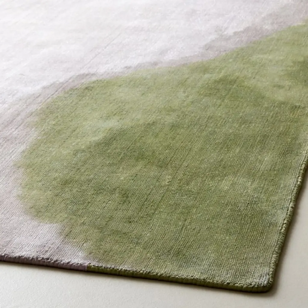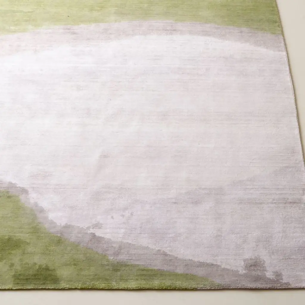 Reproduced from an original Kristen Giorgi work on linen canvas, area rug is fine art for the floor. Inspired by photography taken on holiday in Italy, the softly defined, dreamy sunset scene features soft tones of lavender and green warmly melting into each other. Handloomed construction in silky TENCEL Lyocell viscose feels soft underfoot. CB2 exclusive.How will it look in your room? 12"x12" rug samples are available in stores for a fee refundable upon return of the sample.