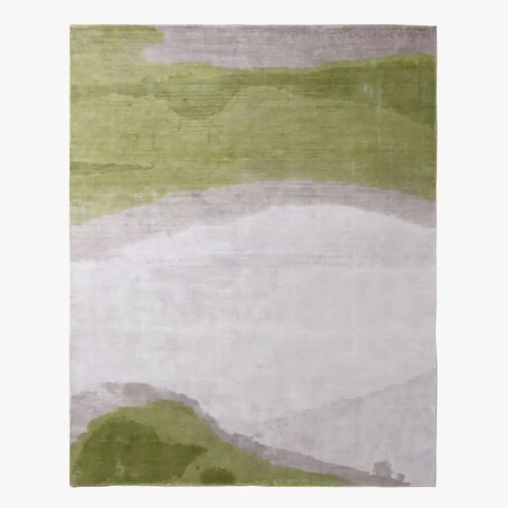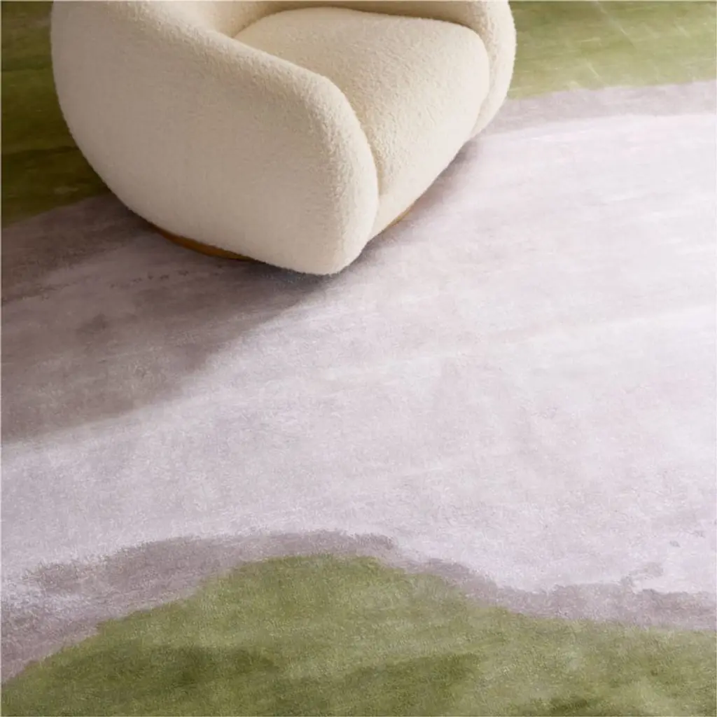 Reproduced from an original Kristen Giorgi work on linen canvas, area rug is fine art for the floor. Inspired by photography taken on holiday in Italy, the softly defined, dreamy sunset scene features soft tones of lavender and green warmly melting into each other. Handloomed construction in silky TENCEL Lyocell viscose feels soft underfoot. CB2 exclusive.How will it look in your room? 12"x12" rug samples are available in stores for a fee refundable upon return of the sample.