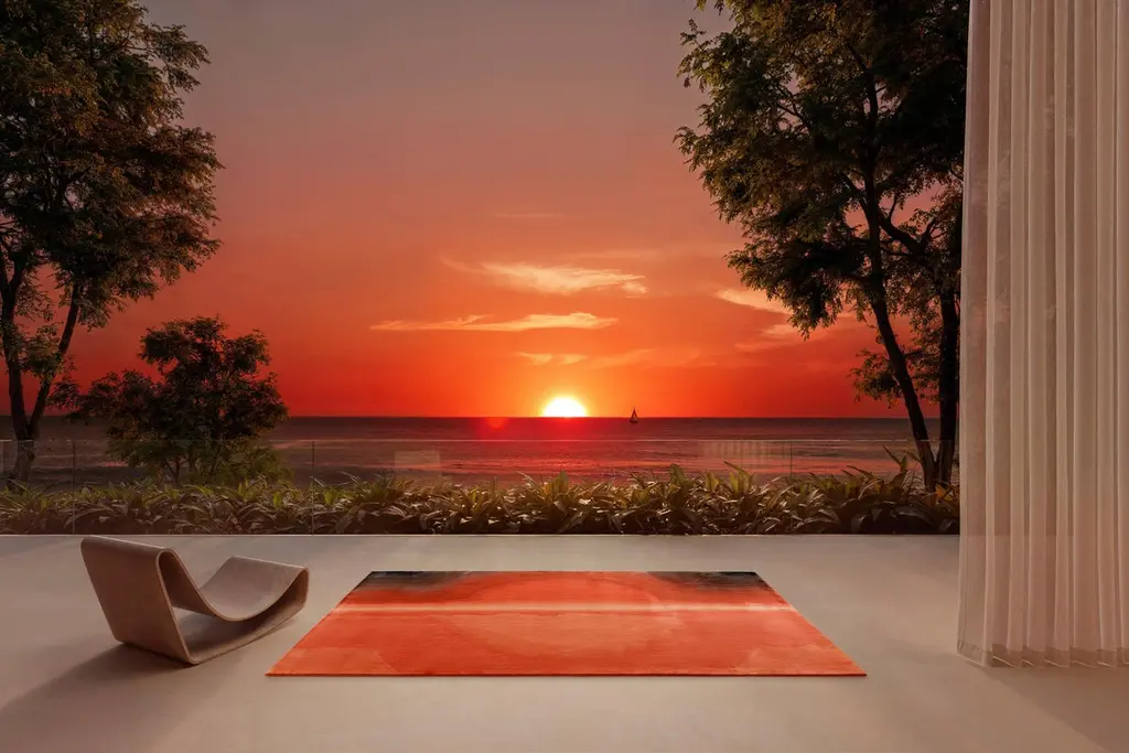 Sunset Rug by Gandia BlascoDesign by Alejandra Gandía-BlascoDimensions: W 170 x H 240 cm. Materials: Fiber composition: 100% wool. Weight: 16,3 kgPassion for life outdoors, a dream come true on the edge of a cliff in the north of Ibiza. The elemental and architectural geometry of our first outdoor furniture collection transcended borders thanks to its ability to respond to canons of timelessness and universality. Its refined, purely architectural design, made of aluminum profiles combined with polyethylene, opened up market niches that didn’t exist until then, confirming the expansion of the company to every continent. The essential design of architectural lines defines the personality of GANDIABLASCO’s furniture and pergolas collections, together with the concept of large collections. More than furniture, these are fresh and elegant products that complement each other to create environments where one can enjoy the outdoors, Mediterranean-style.