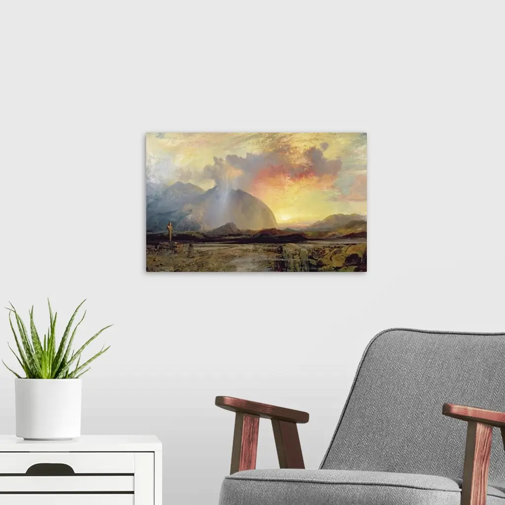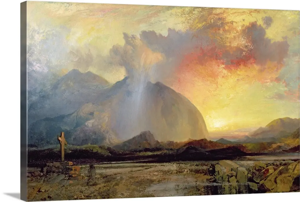 FIN160950 Sunset Vespers at the Old Rugged Cross (oil on canvas) by Moran, Thomas (1837-1926); 55.9x91.4 cm; Private Collection; David Findlay Jr Fine Art, NYC, USA; American, out of copyright
