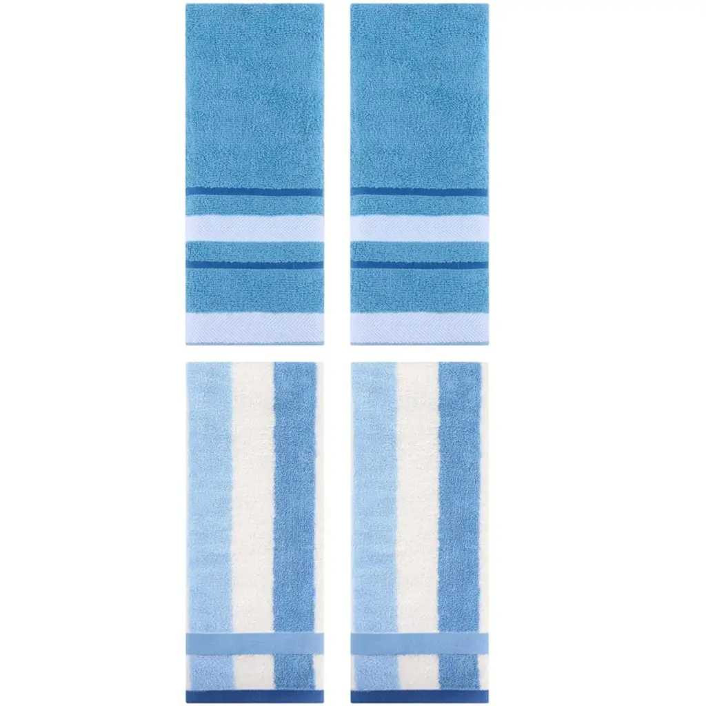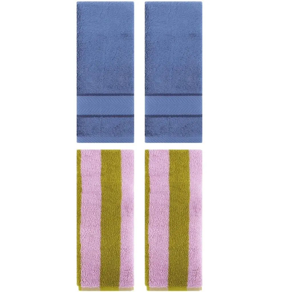 Superior 100% Cotton Stitch Stripe Textured Oversized Beach Towel (Set Of 2) - Blue Violet