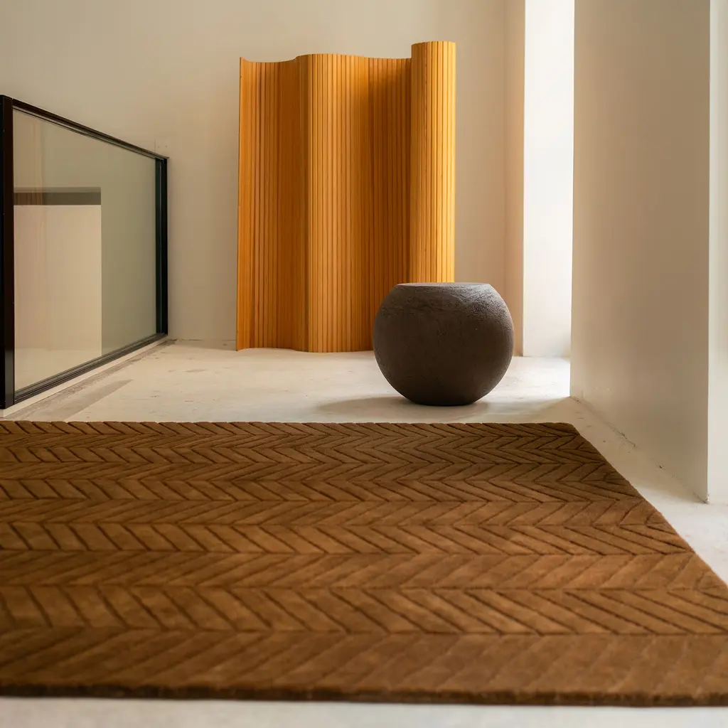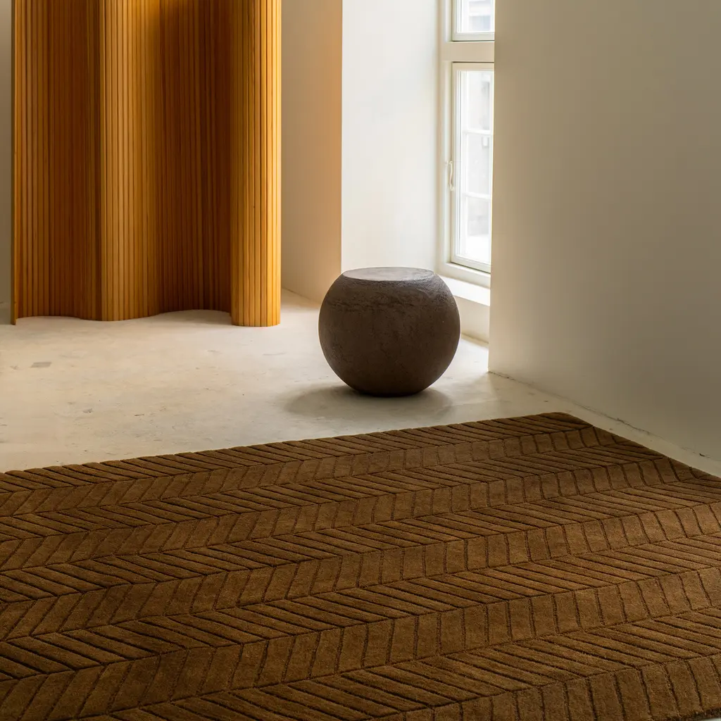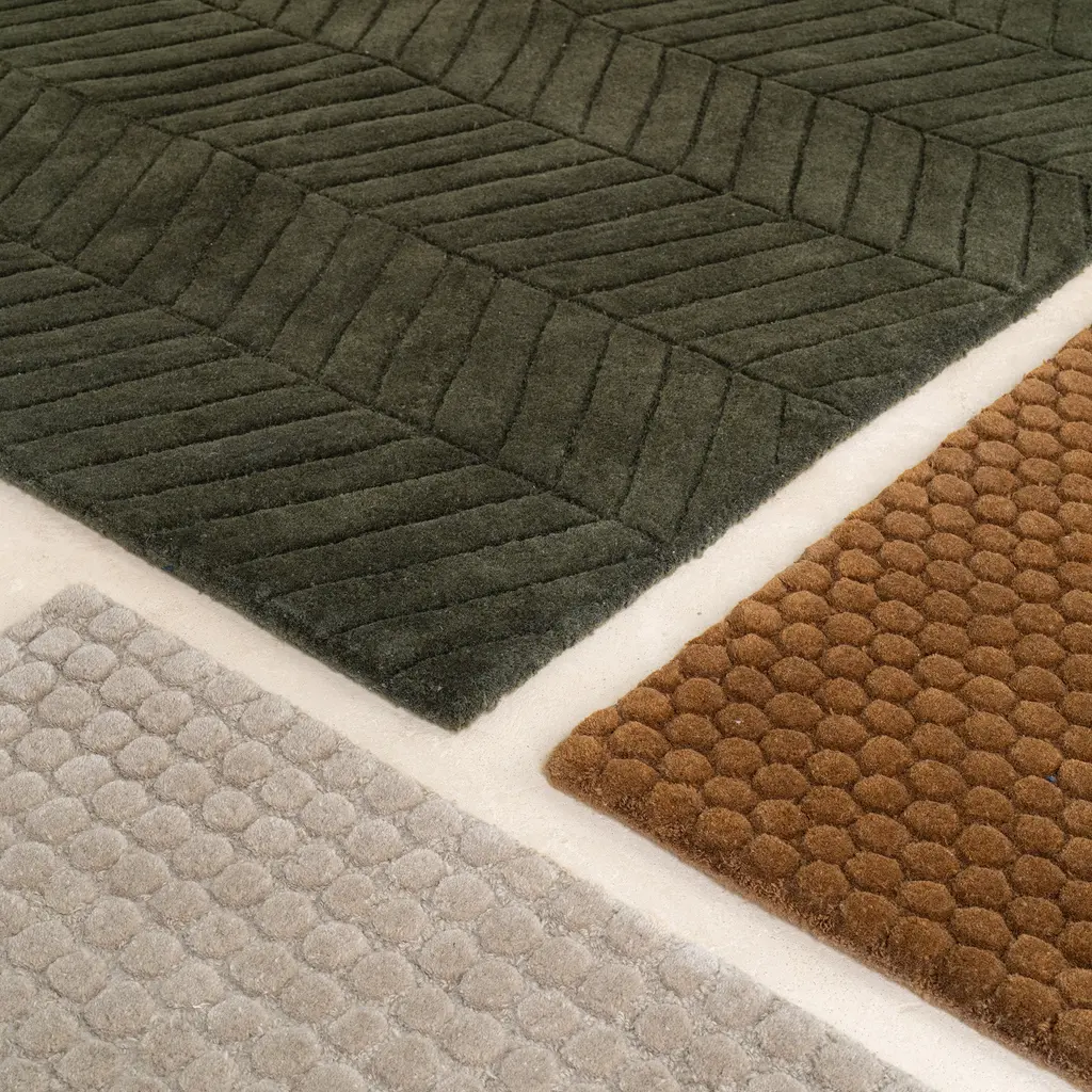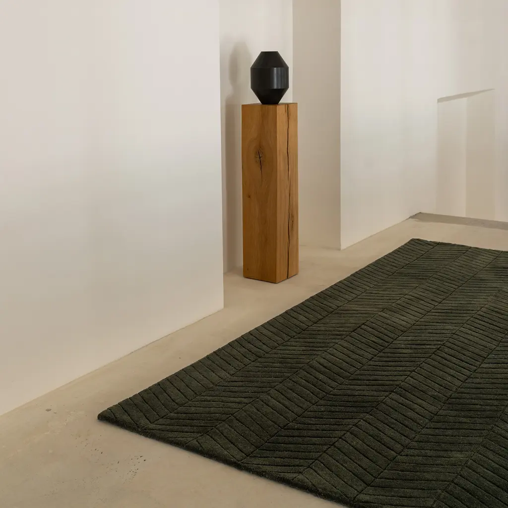 The Surface Rug by Morten Bo Jensen of Groundwork Studio explores the quiet geometry of the everyday. Hand-tufted in rich New Zealand wool, this collection reveals subtle, architectural motifs inspired by natural textures—veins in stone, scattered droplets, the grain of earth itself. Each design is composed in carefully balanced monochrome tones, allowing the surface to speak without distraction. Created for massimo copenhagen, the Surface Collection is not just visually refined but materially considered: the density, texture, and depth of each rug add structure and softness to a space. Whether chosen for its sculptural presence or its understated rhythm, the Surface Rug brings depth and harmony to interiors that value restraint, nuance, and atmosphere. Available in three tones—Forest Green, Rocky Grey, and Smoked Caramel—and two motifs: Vein and Drops.