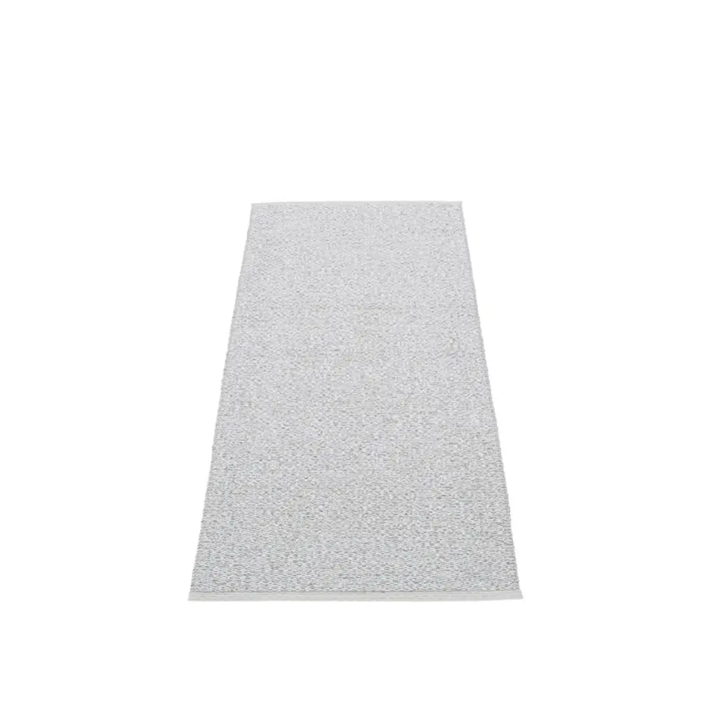The Svea plastic rugs from Pappelina are woven on a traditional loom in Dalarna, Sweden. Made of phthalate-free PVC ribbon, the rugs are durable and easy to care for, and their two-colored metallic shades are perfect for modern interiors. The Svea rug can easily be put to use as a hallway rug, kitchen area rug or outdoor rug. The Svea rugs come with an embossed logo on both ends.